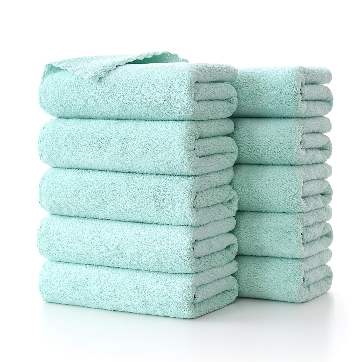 フェイスタオル 10枚セット 吸水タオル 約75×35cm 吸水速乾 ふわふわ 柔らかい 肌に優しい マイクロファイバー 抗菌防臭 毛羽落ちしない 風呂上がり 家庭用 プレゼント (グリーン)