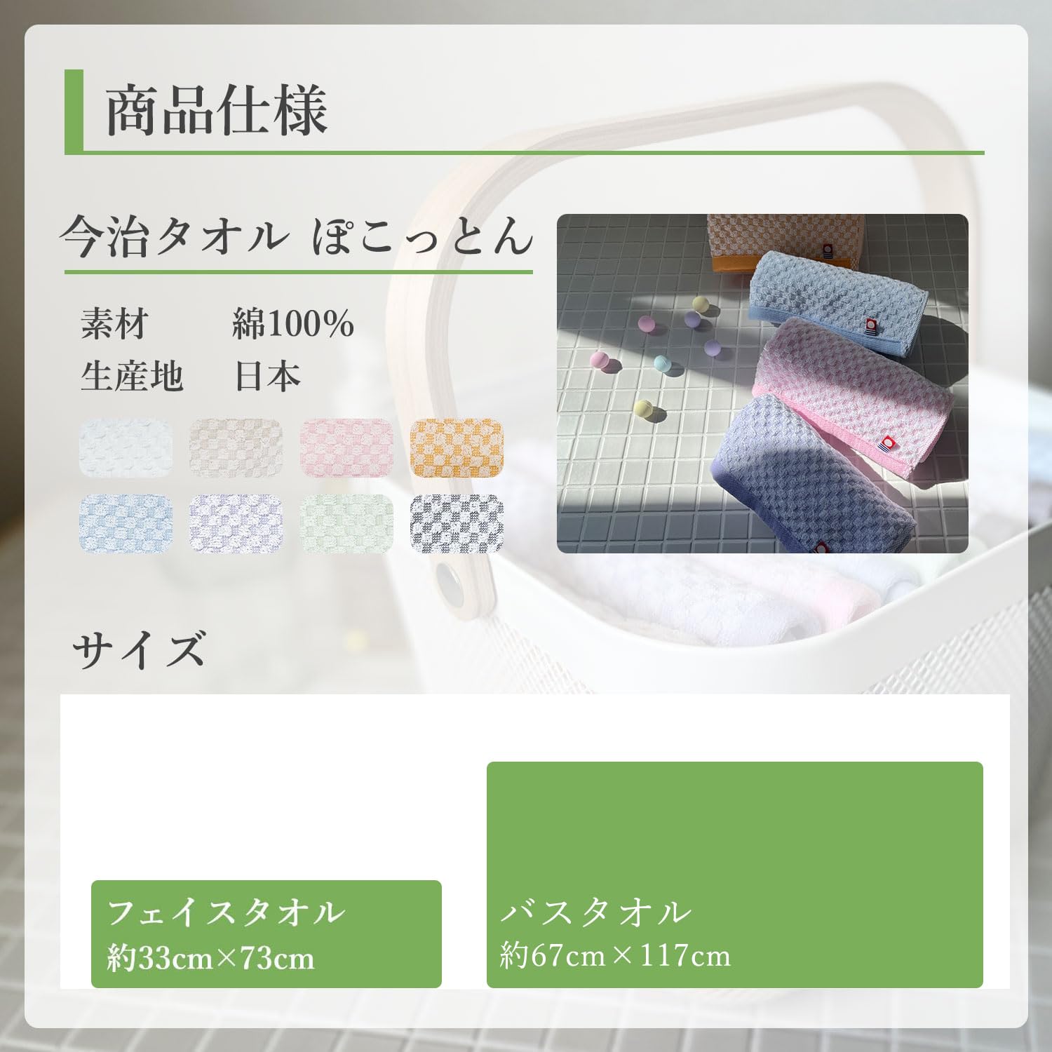 【商品サイズ】フェイスタオル:約33×73cm