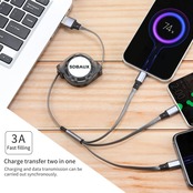 【特価セール】充電ケーブル 3in1 充電コード 巻き取り3A 急速充電 ライトニングケーブル 携帯充電ケーブル USBケーブル Phone/Type C/Micro USB 3台同時充電Android タイプC各機種対応【2本セット】 | asaRulu0511