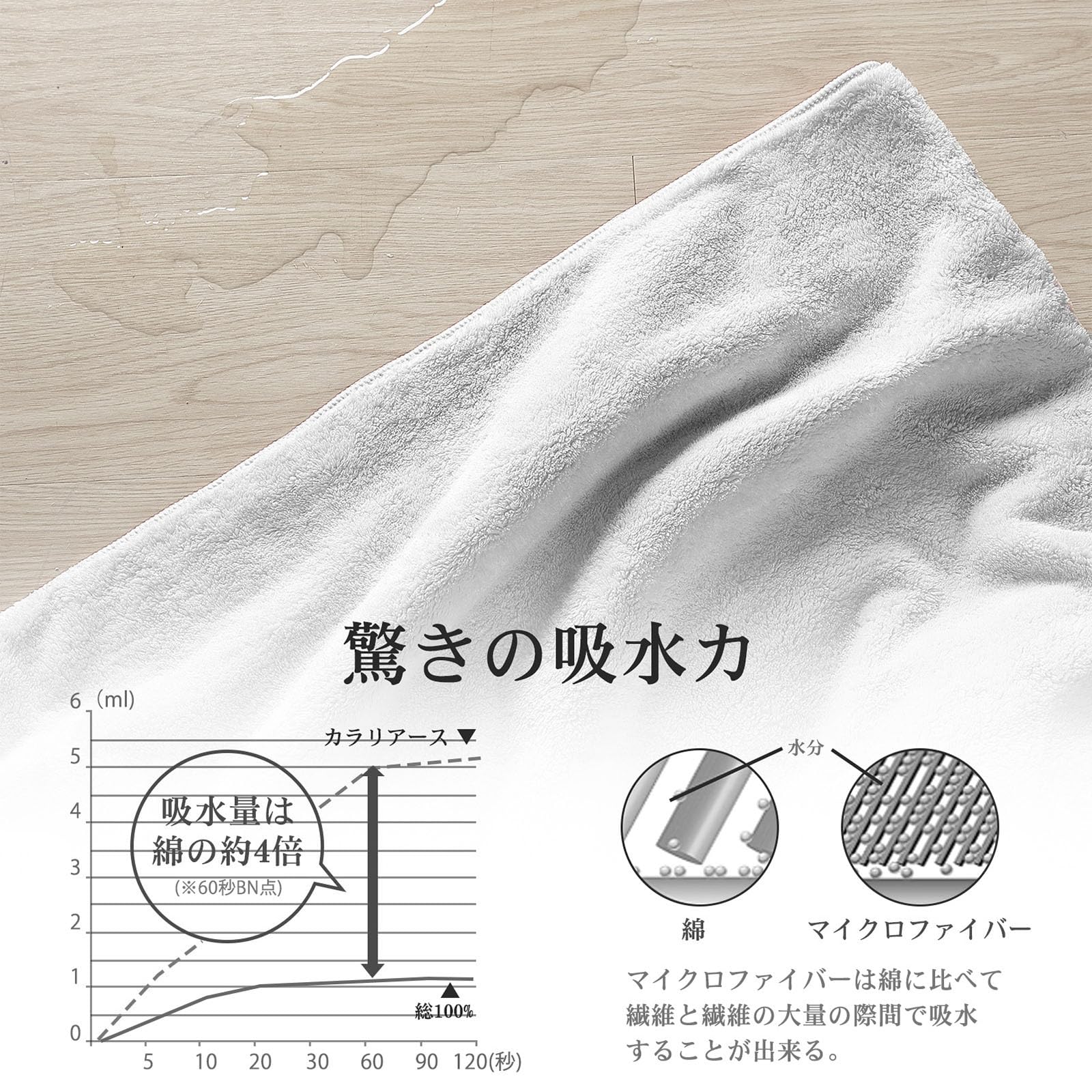 【吸水力】綿の約4倍吸水で、ふわふわ速乾バスタオル