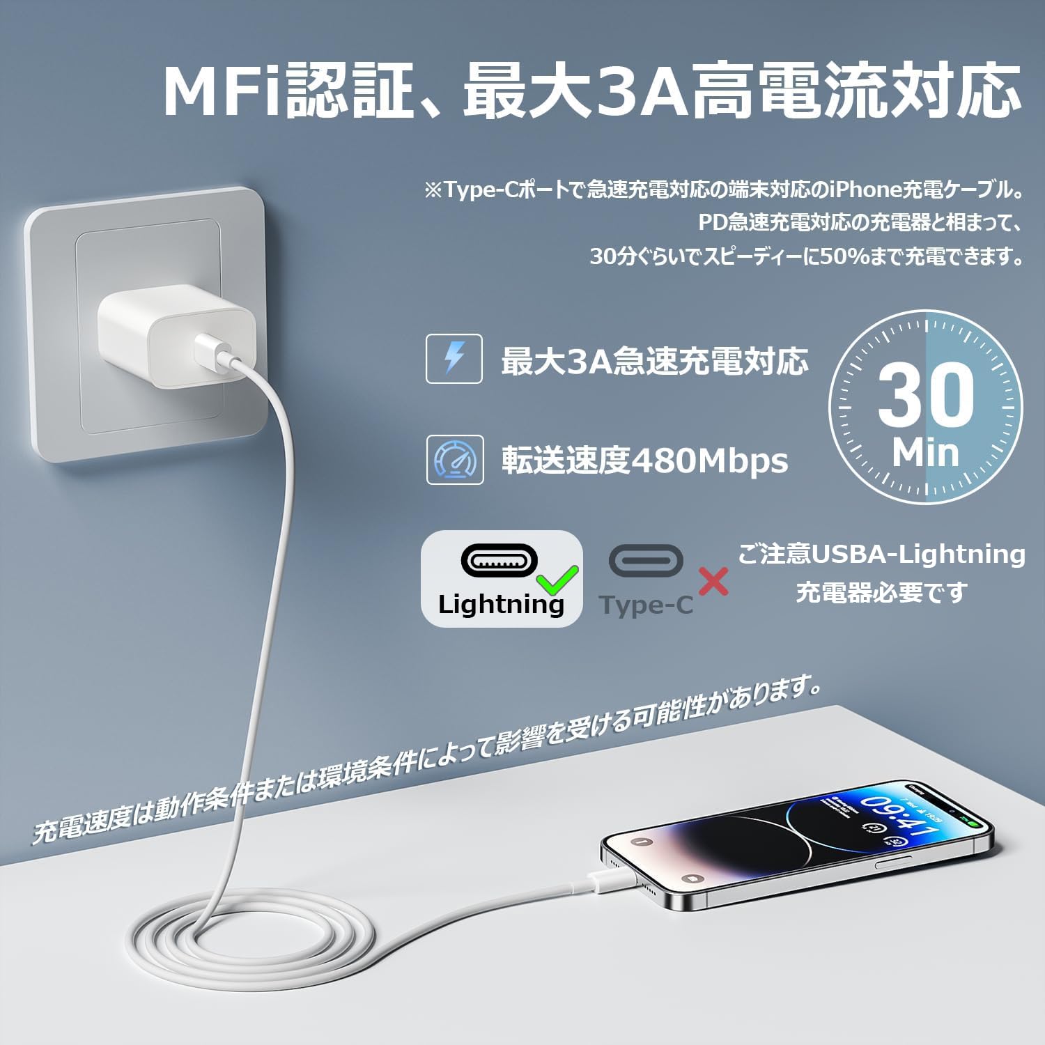 iPhone 充電ケーブル タイプc 【純正品/MFi認証/PSE認証】 ライトニングケーブル USB-C Cable 【2M 2本】 アイフォン充電 急速充電&高速データ同期 lightningケーブル iPhone/iPad/iPod lightning usb-c type-c各種対応 アイフォン高速充電コード