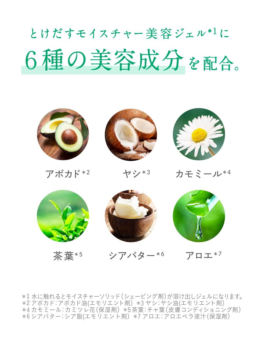 ※水に触れるとモイスチャー美容ジェル(シェービング剤)が溶け出し、ジェルになります。刃の1枚1枚についた独自のスキンガードが、肌への負担を減らします。
