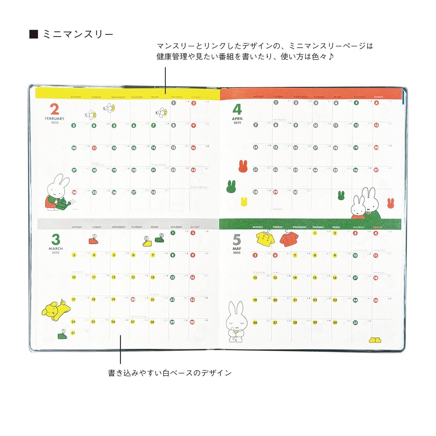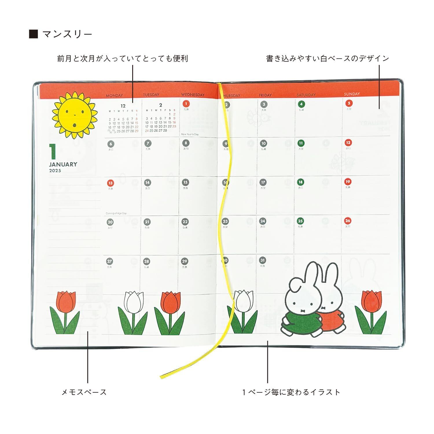 スクエア ミッフィー 手帳 2025年 A5 マンスリー グレー 08BD-5G (2024年 10月始まり)