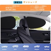【静電気による簡単装着】吸盤を使用しない静電素材を採用しており、従来の吸盤式サンシェードとは異なり、窓ガラスに直接貼り付けるだけで瞬時に固定されます。運転席、助手席および後部座席のサイド窓に対応し、取り付けと取り外しが容易です。