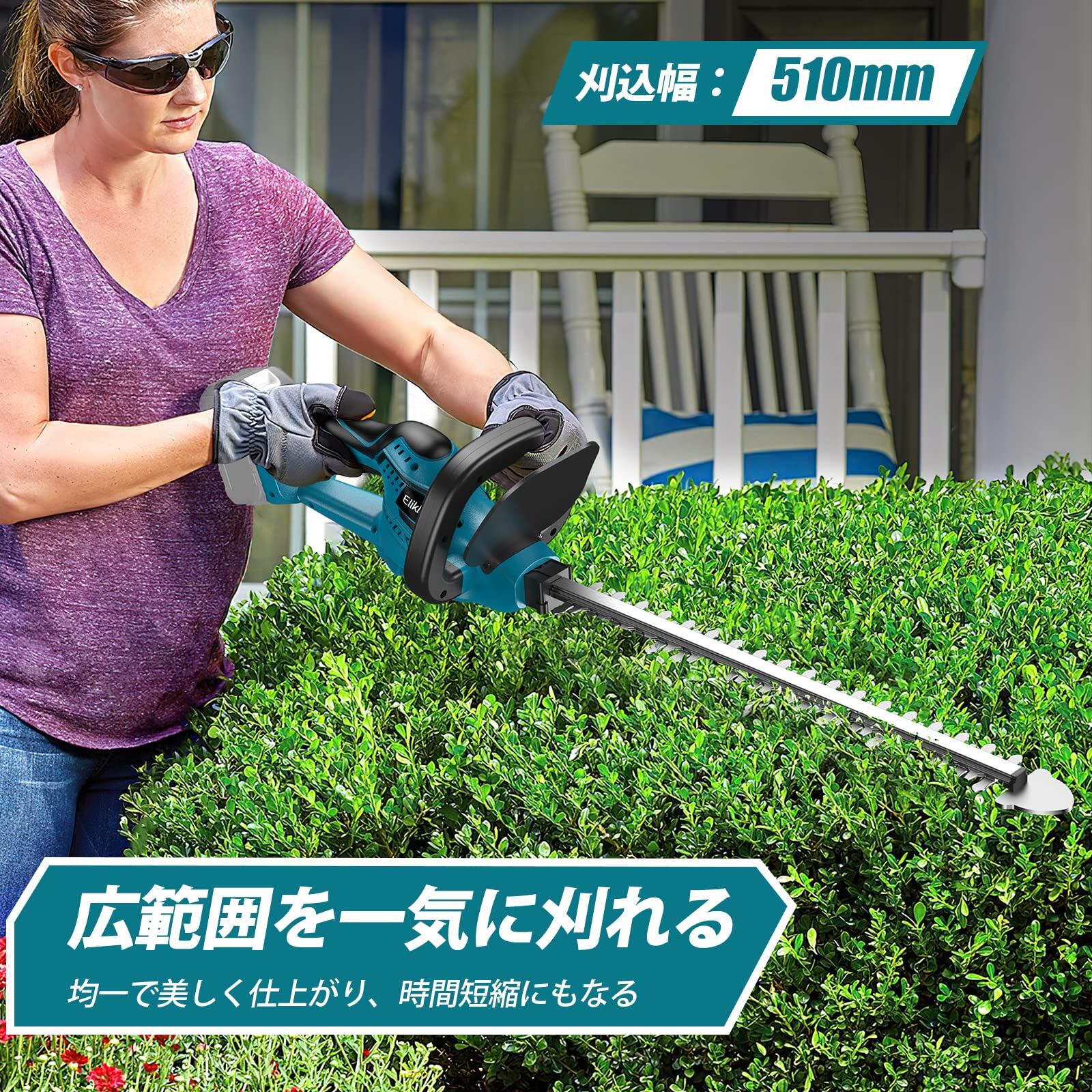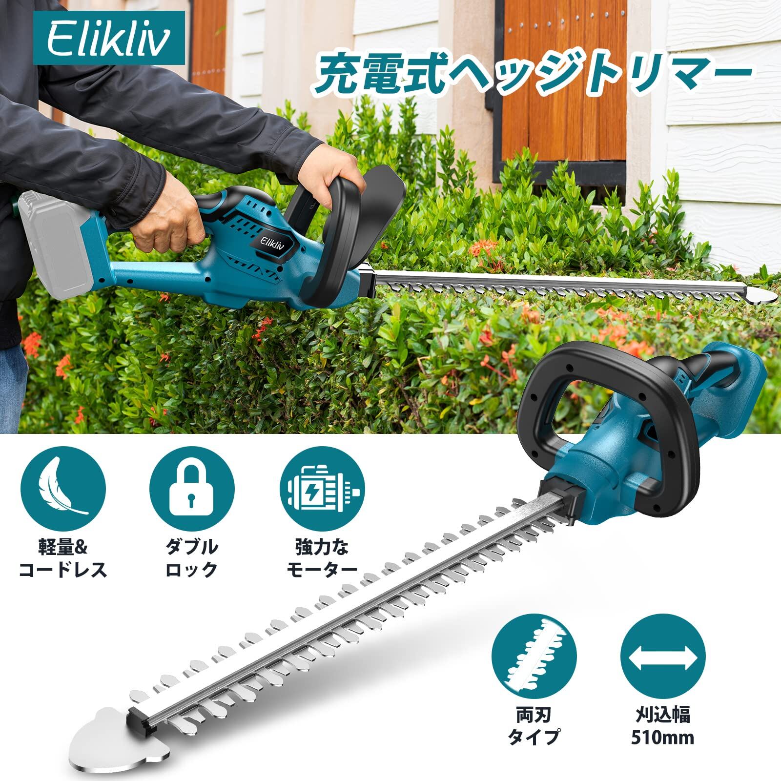 【新着商品】Elikliv ヘッジトリマー 充電式 剪定トリマー 生垣バリカン ガーデントリマー コードレス 刈込幅510mm ダブルブレード 生垣剪定 枝切り 垣根 刈り込み機 庭木バリカン 草刈り機 草抜き 植木バリカン マキタ18Vバッテリー対応 【本体のみ・バッテリー別売り】 | asaRulu0511