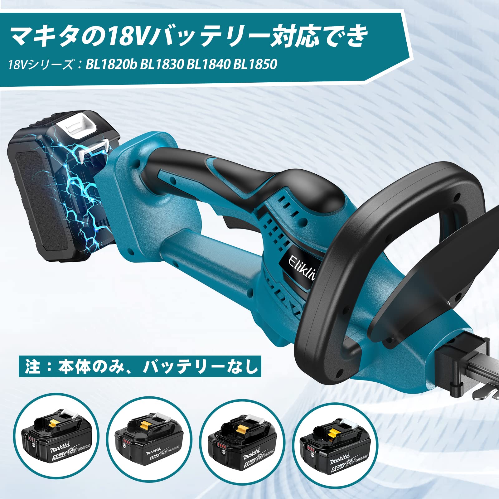 Elikliv ヘッジトリマー 充電式 剪定トリマー 生垣バリカン ガーデントリマー コードレス 刈込幅510mm ダブルブレード 生垣剪定 枝切り 垣根 刈り込み機 庭木バリカン 草刈り機 草抜き 植木バリカン マキタ18Vバッテリー対応 【本体のみ・バッテリー別売り】