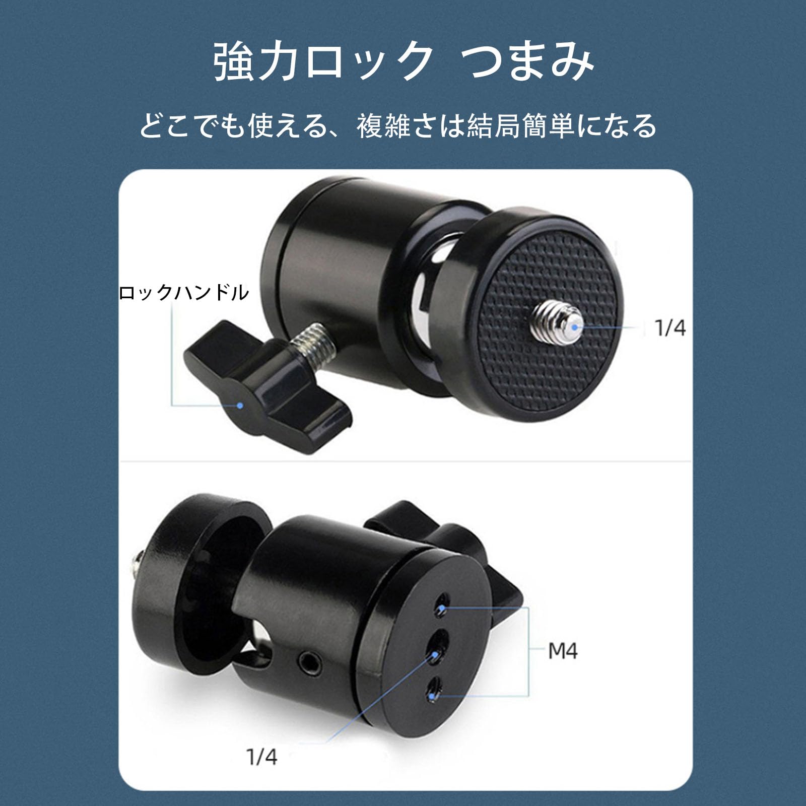 【しっかりと固定】ボールヘッドは重い荷重に耐えることができ、カメラネジ部分も強く締められます、スムーズに動きます。