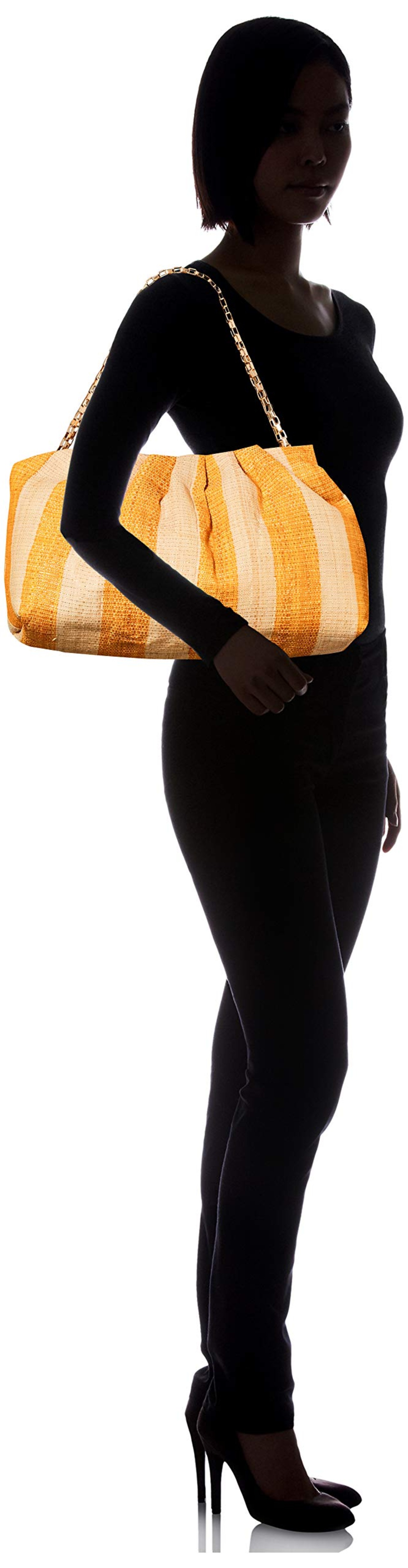 天然繊維ラフィア素材のダブルチェーンストラップ付き中型ソフトポーチバッグ