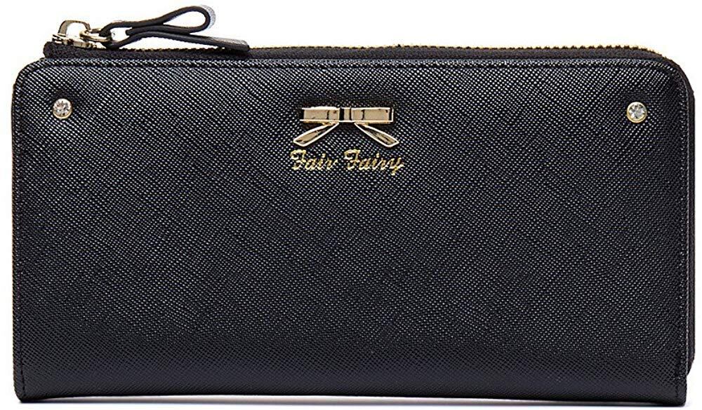 [フェアーフェアリー] 財布 L字ファスナー 長財布 本牛革 シンプルリボン レディース 160724 (ブラック.アウトレット)