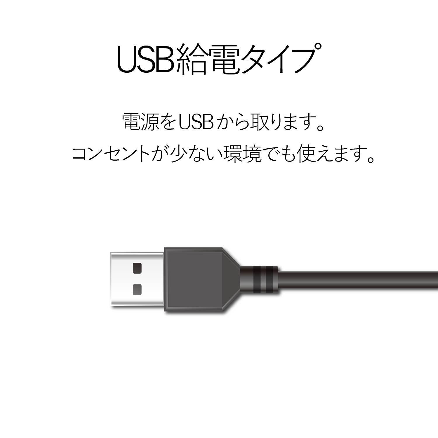家庭用電源を必要としないUSB電源タイプです。パソコンのUSBポートに接続することで、手軽にお楽しみいただけます。