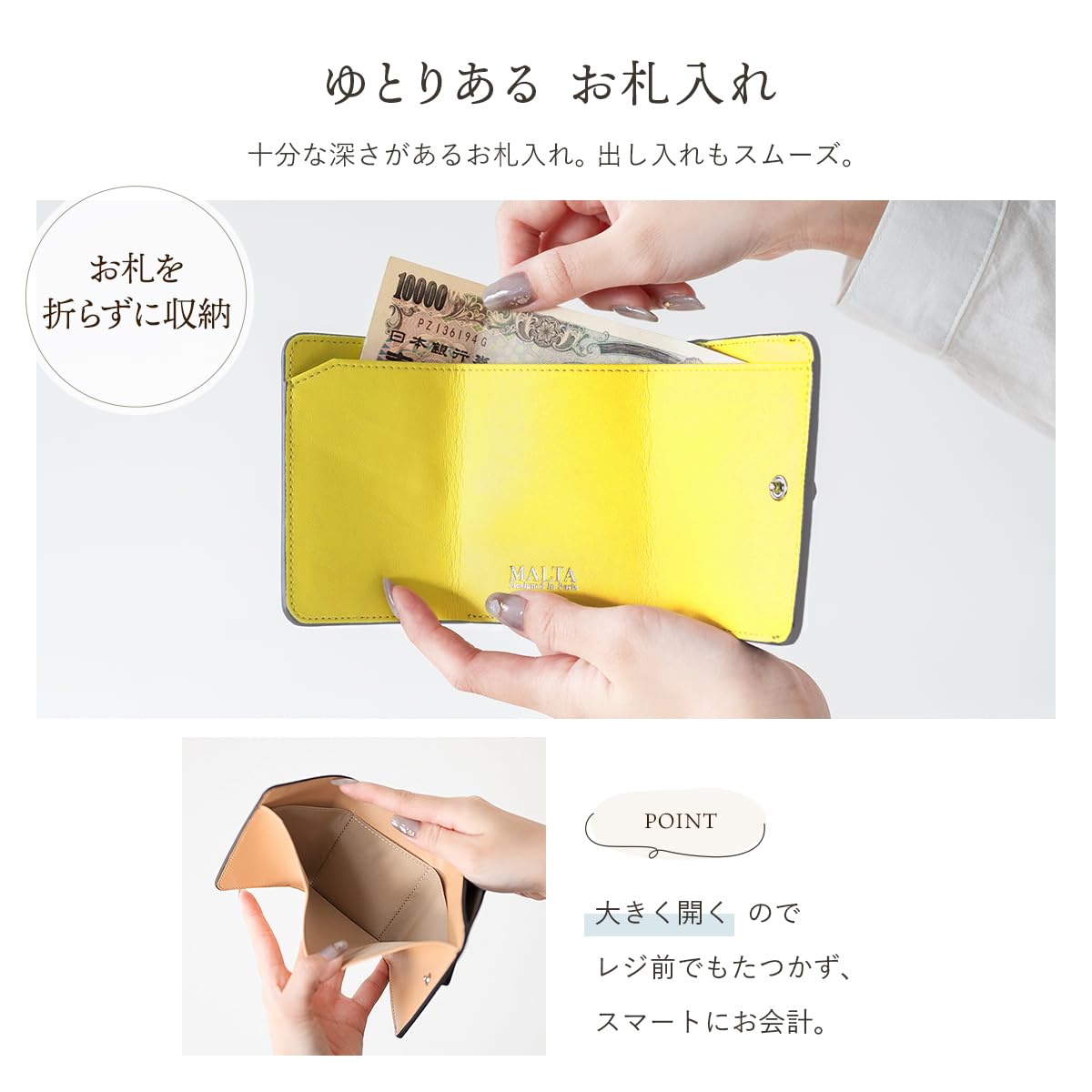 [MALTA] ミニ財布 三つ折りメンズ レディース コンパクト 小さい レザー 牛革 ボタン型 小銭入れ カード入れ 大容量 ブラックピンク