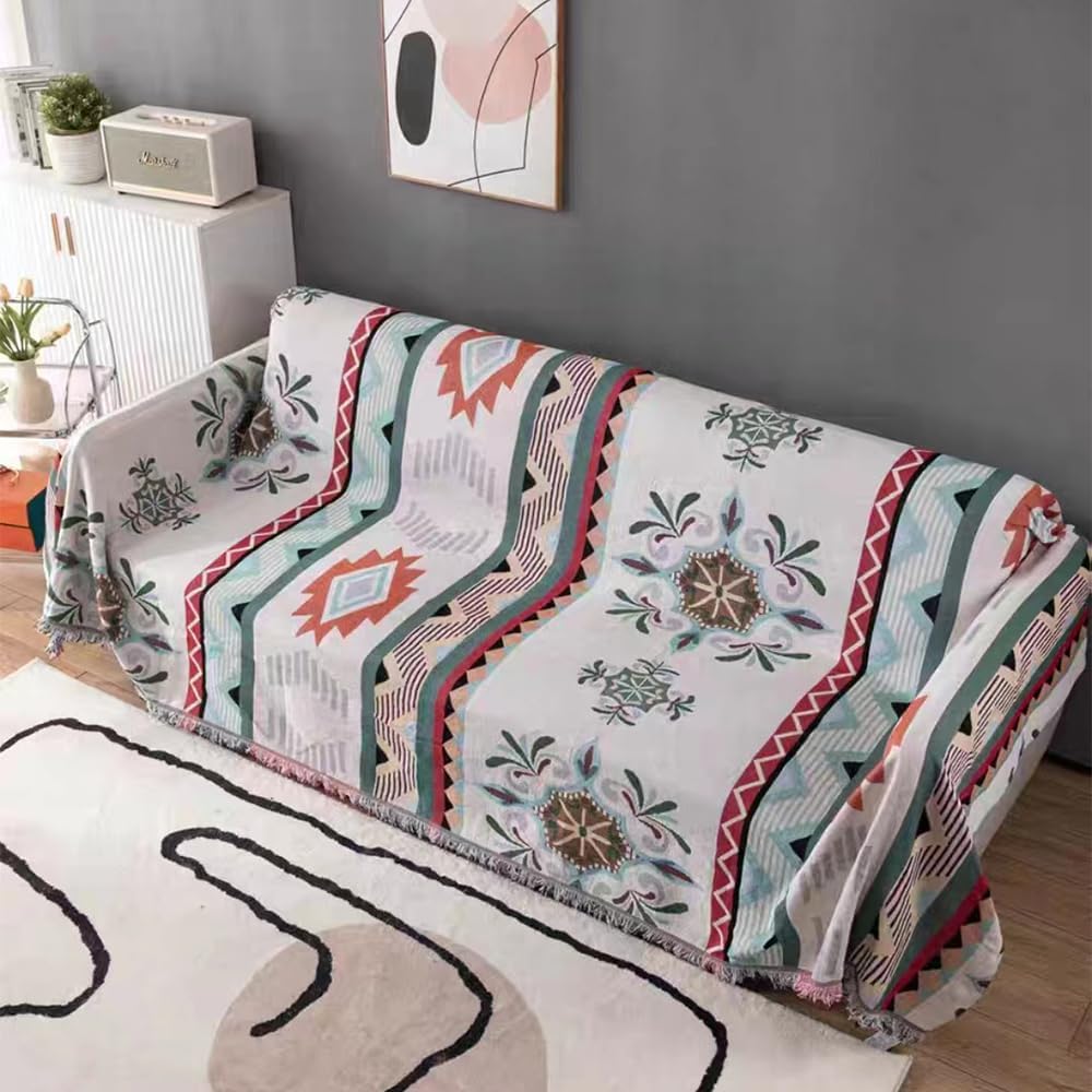 CHOZAN マルチカバー ソファーカバー 北欧 リバーシブル 多機能 ブランケット レジャーシート 毛布 ラグ テーブルクロス ベッドカバー ひざ掛け キャンプブランケット ピクニックマット マルチカバー 長方形 おしゃれ フリンジ付き 四季通用(180*180cm)