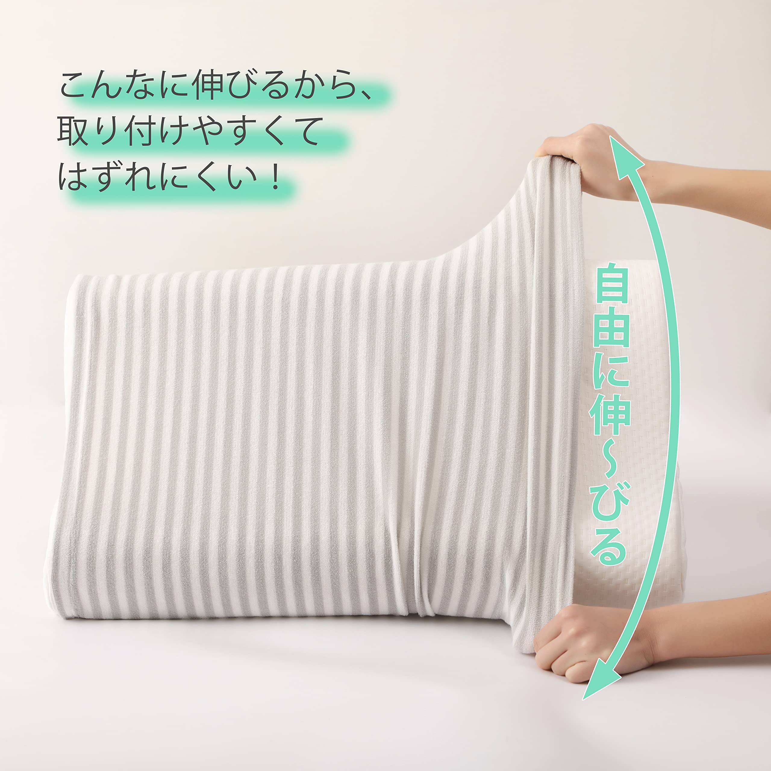 【枕カバー適用範囲】 商品サイズ:横36 x縦57cm。対応枕サイズ:約35x55~50x70cm。伸縮性に優れた、筒形のびのびタイプのピロケース。また低反発枕、特殊形状の枕にもフィット!