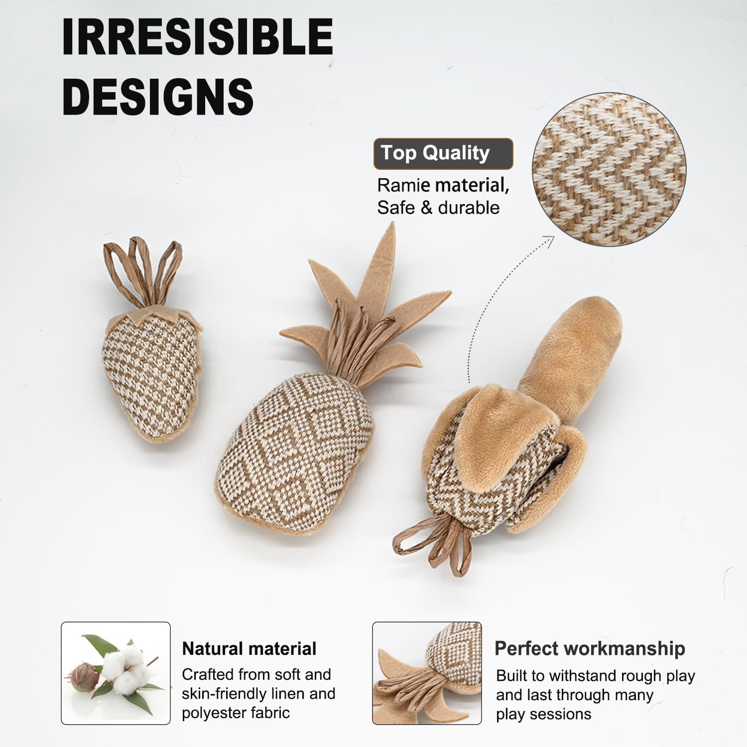 猫のネズミのおもちゃ 天然の麻材料 ネズミと魚と小鳥 フルーツいぐるみ 猫用玩具 猫遊び 噛むおもちゃ 運動不足解消 ストレス解消 (3個入いちご+パイナップル+バナナ)