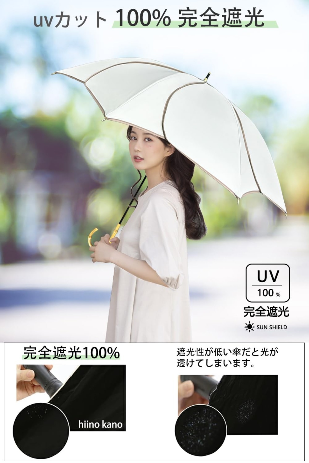 hiino kano 日傘 uvカット 100 遮光 長傘 花びら 完全遮光 日傘兼用雨傘 レディース 5級撥水 超軽量 約250g 晴雨兼用 遮熱 丈夫 かわいい 母の日 プレゼント バンブー 持ち手 親骨50cm