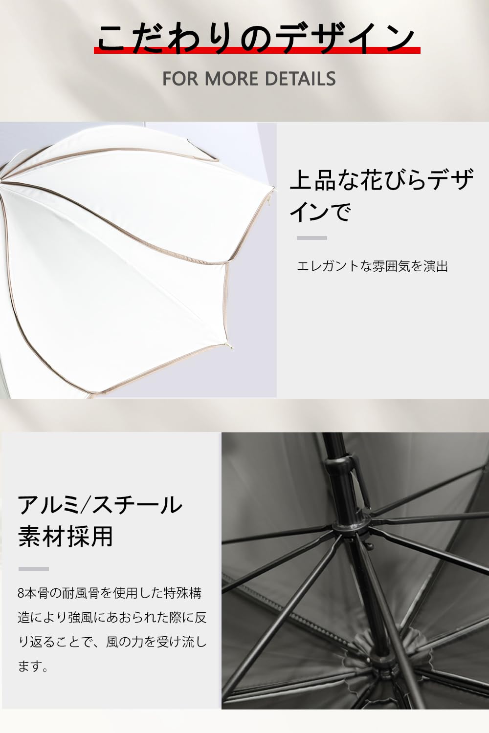 ✦ 【上品な花びらデザイン × 落ち着いたカラー】シンプルながらも大人かわいい花びらデザインで、エレガントな雰囲気を演出。どんなコーデにも馴染みやすく、上品な装いにぴったりです。女性らしい柔らかな印象を与えながら、雨や日差しからしっかりガード。スリム型のショート傘なので、収納しやすく持ち運びにも便利です。 ギフトにも最適 – 誕生日、母の日、結婚式、就職祝い、還暦祝い、旅行など、さまざまなシーンで喜ばれるおしゃれなプレゼントに!