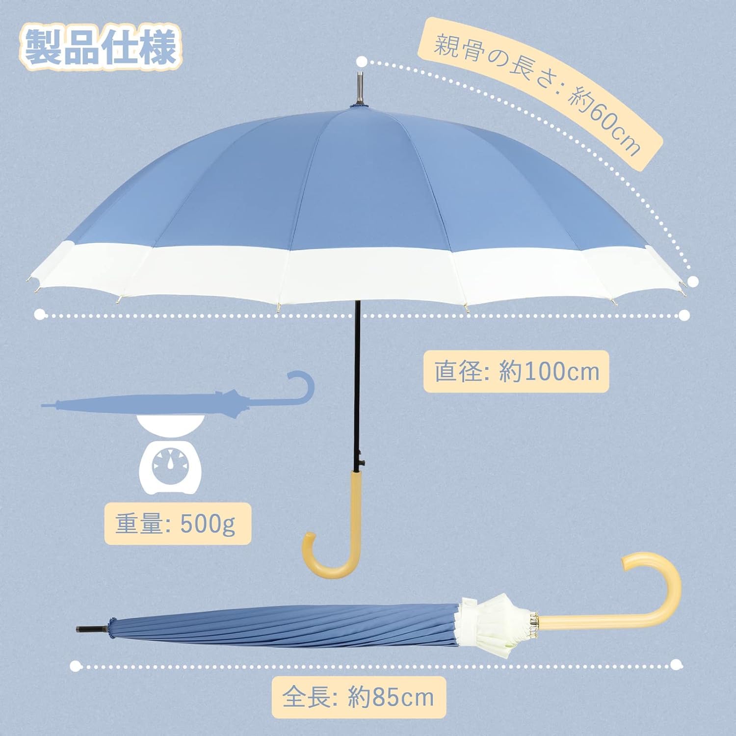 【耐久性に優れ、曲線が美しい傘 】美しい傘 レディース 16本骨は、しなやかで丈夫なグラスファイバー製なので、風にも強く頑丈です。 強風でも簡単に折れたり曲がったりする心配はない。雨と風が同時に襲いやすい日本では、丈夫で壊れにくい傘はとても魅力的だ。 悪天候の中でも風を上手に避けながら使える。
