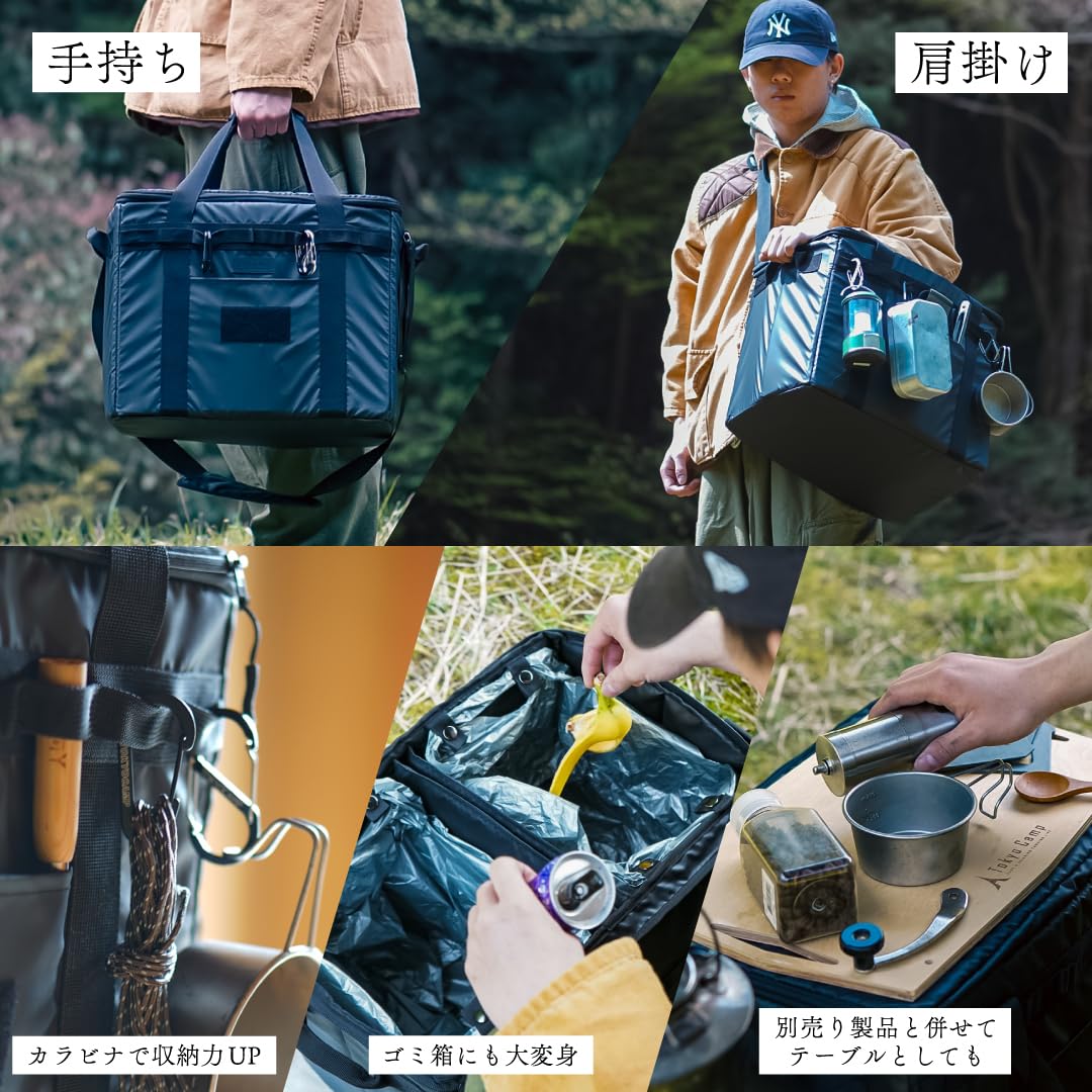 Tokyo Camp ソフトコンテナ アウトドア収納ボックス 大容量 37L 軽量1000g 全面防水 折りたたみ式 ギアボックス テーブル兼用 ゴミ箱対応 キャンプ用品 ツールボックス 車載収納 黒