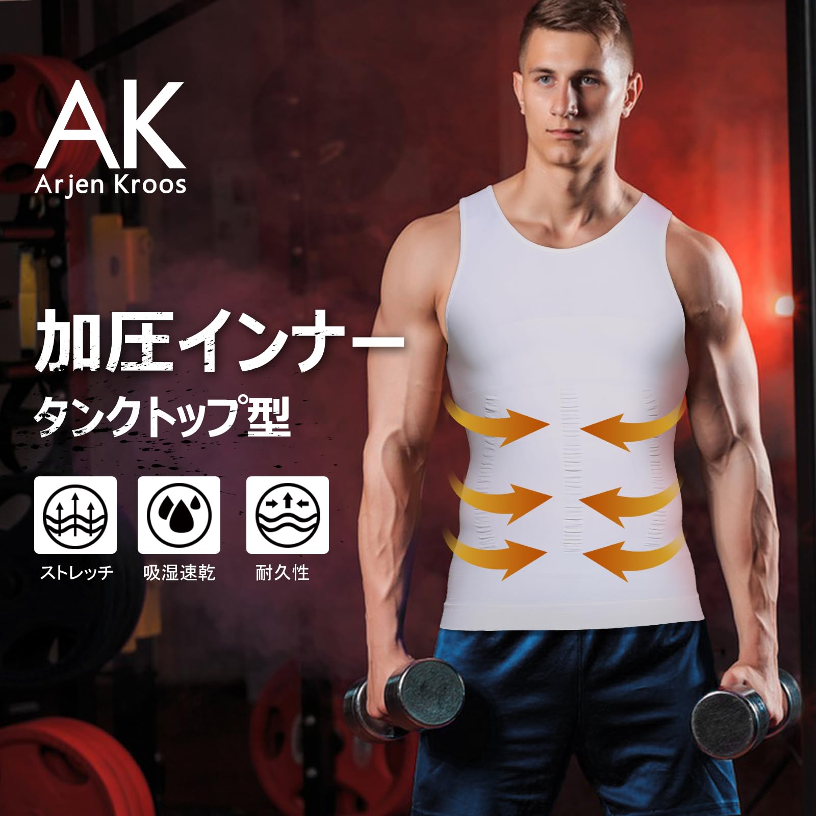 【新春セール】[Arjen Kroos] タンクトップ メンズ スポーツ 加圧インナー コンプレッション ノースリーブ ランニング トレーニング 加圧シャツ 猫背 着圧 筋トレ 補正下着 ML2003 | asaRulu0511