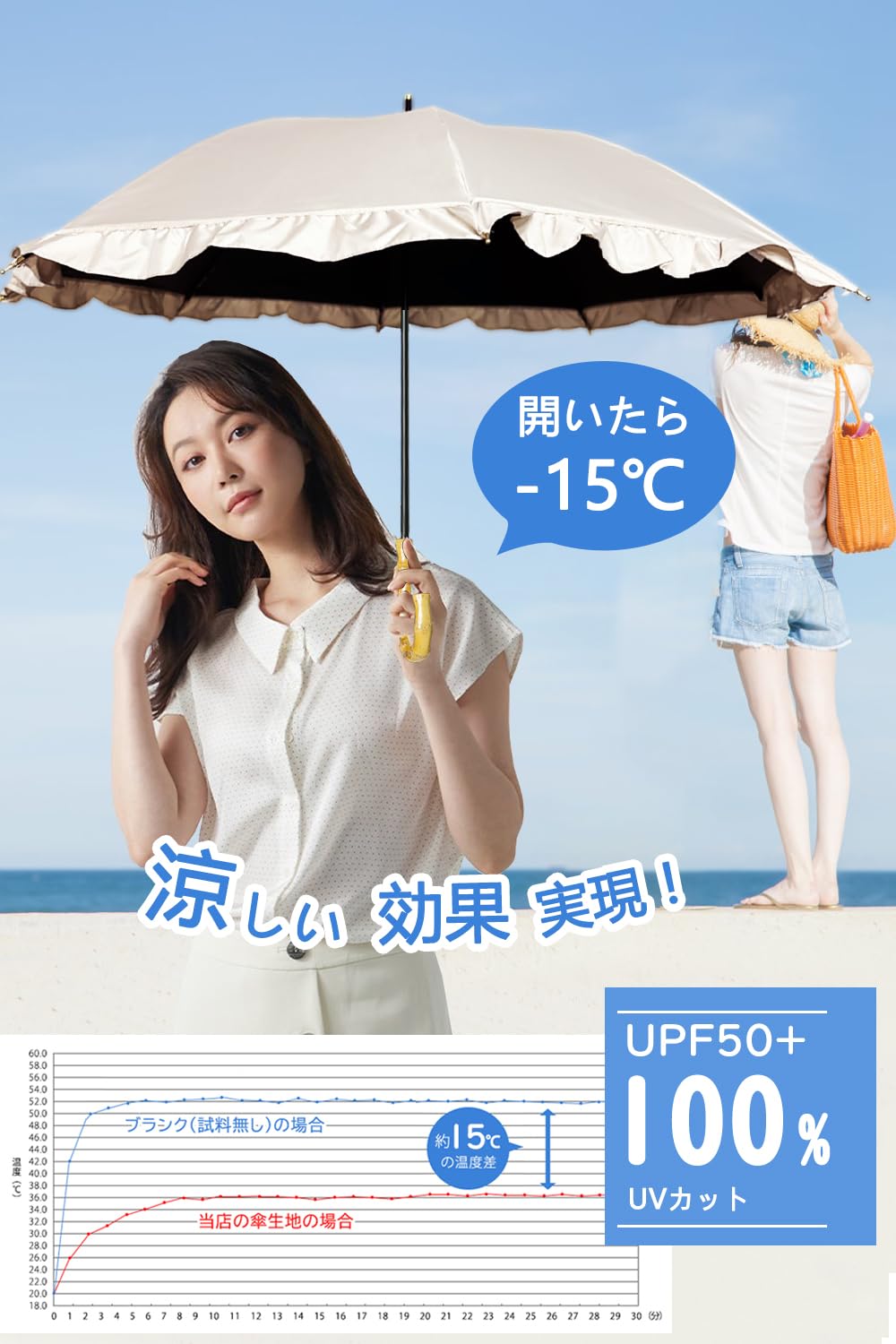 ✦【夏の日焼け対策・日傘 uvカット 100 遮光】UVカット加工が施されている生地を採用したうえ、傘面がコーティングされた傘で上方からの日差しをしっかりカットし、下方からの輻射熱が裏の黒で吸収して、炎天下でもジリジリの日差しを遮ってくれ、遮熱効果もあります。UVカット率は99.9%以上、大切なお肌を太陽光線、紫外線からガードでき、日焼け対策アイテムとしても心強い。