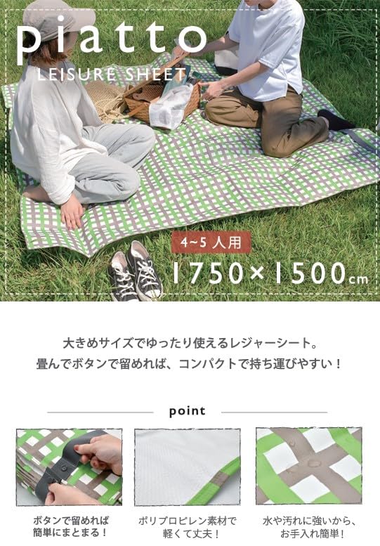 現代百貨 piatto レジャーシート ミックスチェック L 175cm*150cm 4-5人用 A682GR