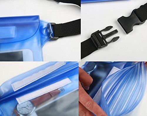 防水ポーチ素材:PVC、防水ファスナー、PPウエストベルト、ABS 。サイズ: 22*15.5cm , ベルト:85*2.5cm カラー: ブルー/クリア/ブラック 。 内容:防水ポーチ2 個