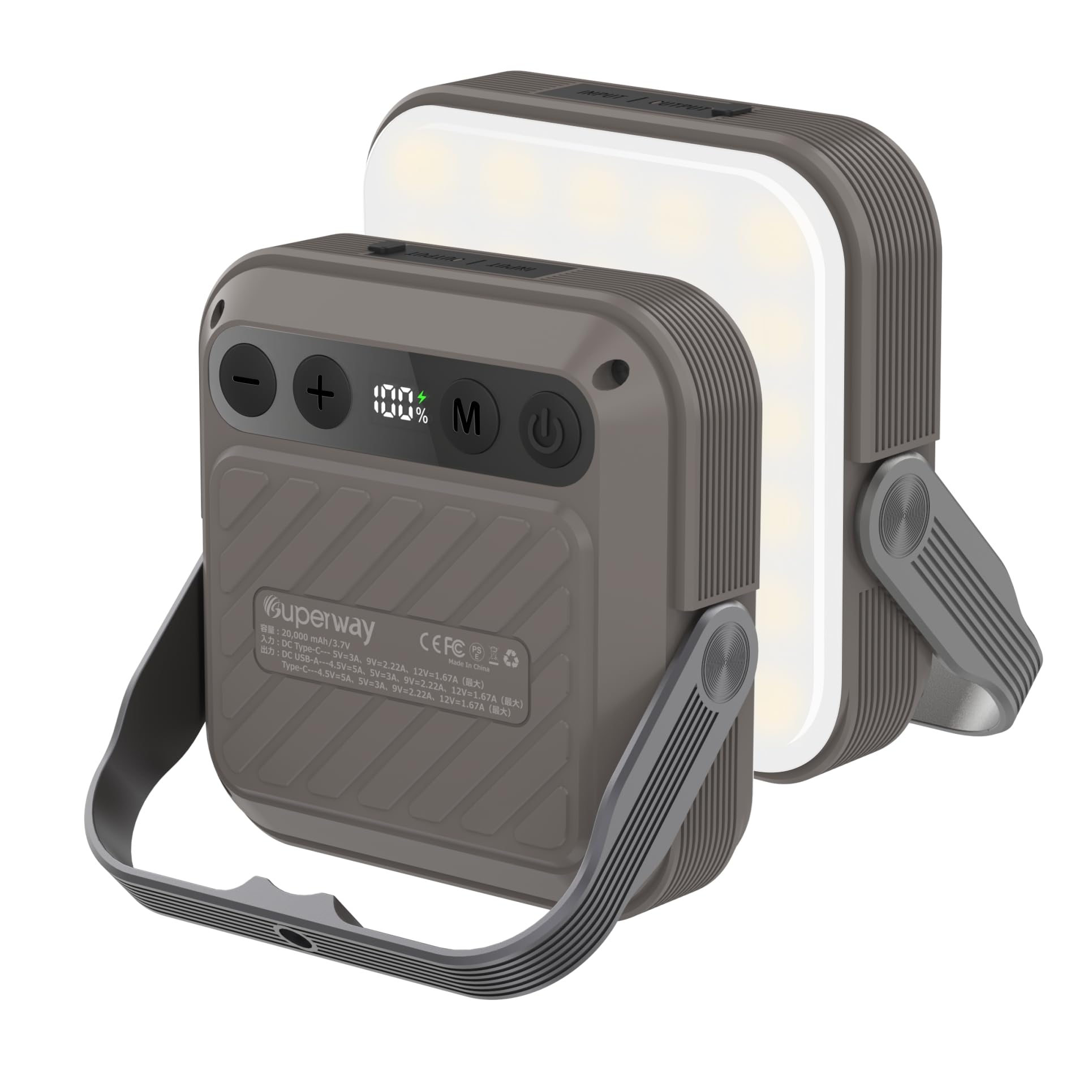 SUPERWAY 20000mAh led ランタンQC 3.0/22.5W 2024新登場 1600ルーメン 四色切替 昼光色 昼白色 電球色 赤色点灯 SOS IP65 防水 アウトドア ライト 電気量輝度数字表示 光色/輝度記憶 三脚接続可能 磁石内蔵 電気式ランタンKHAK