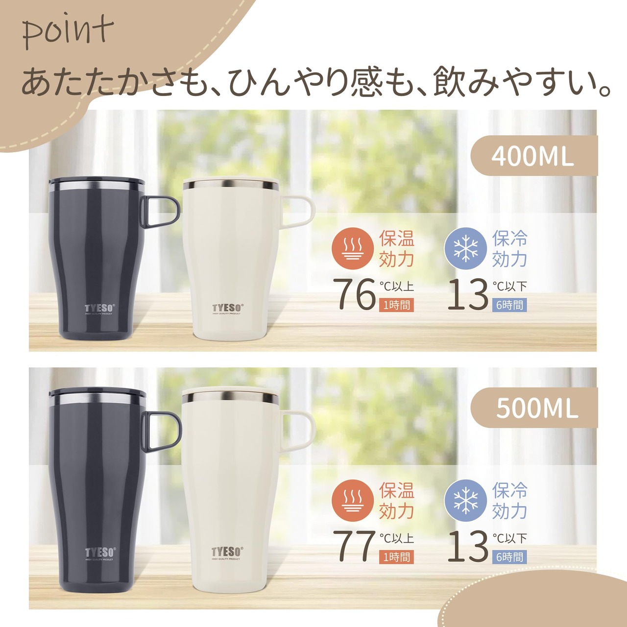 【在庫セール】TYESO マグカップ タンブラー 蓋付き ステンレス鋼 真空断熱 大容量 保温保冷 コーヒー カップ 取っ手付き 持ち運び タンブラー プレゼント 500ml TS-8879 青 | asaRulu0511