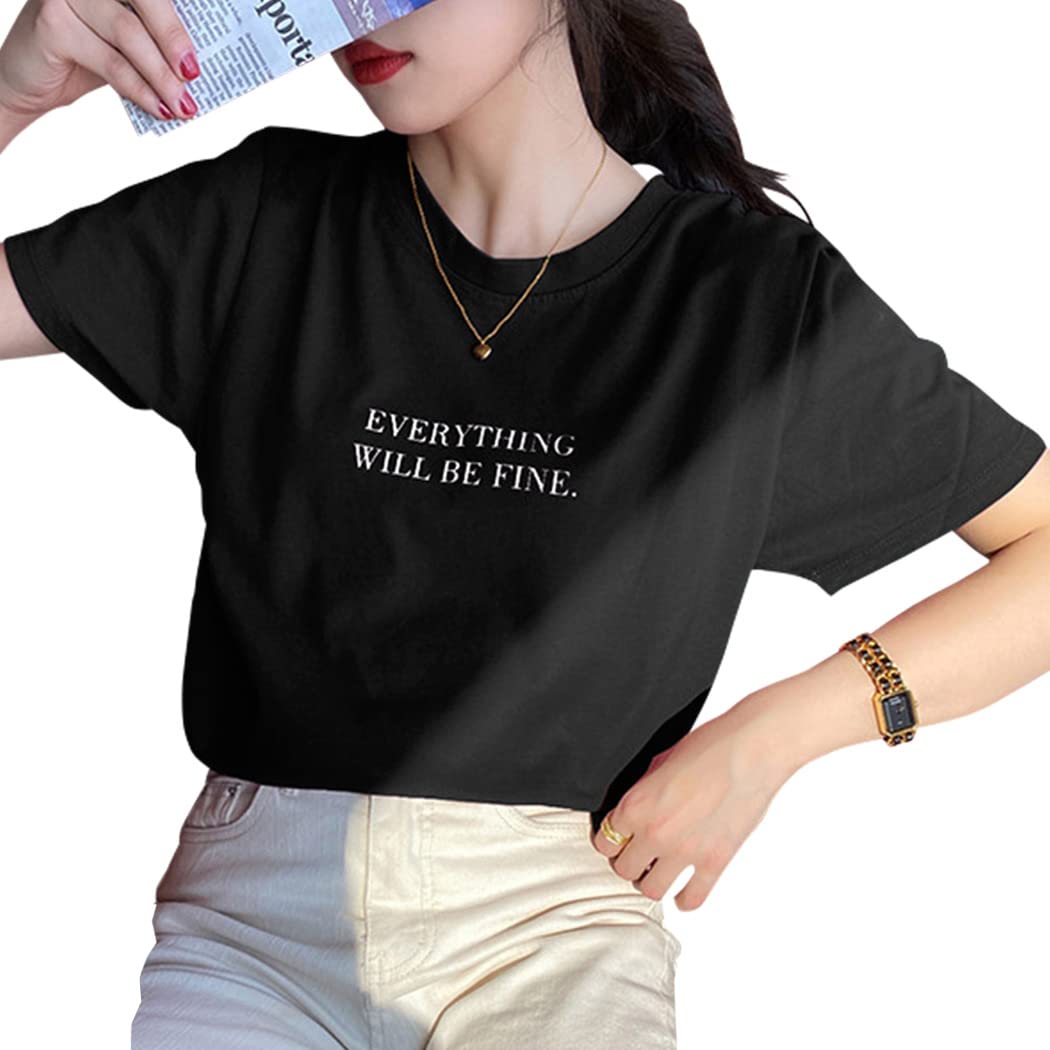 [Teddy] Tシャツ レディース 半袖 ゆったり カットソー 薄手 ロゴT ミドル丈 春夏 tops1411