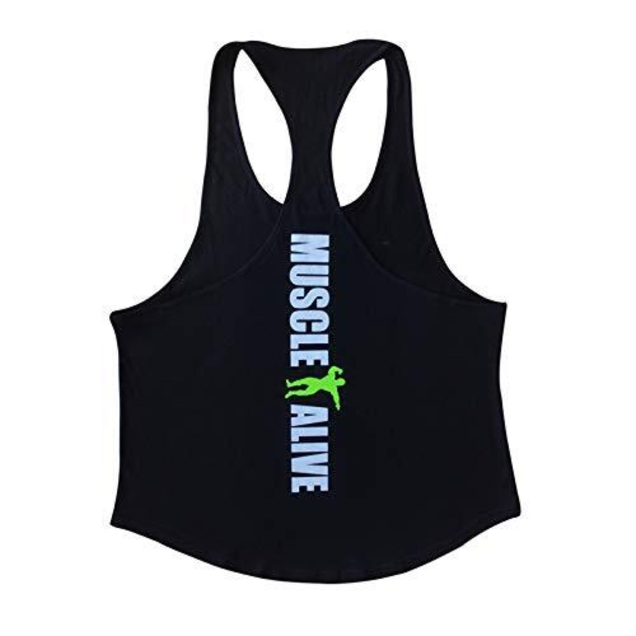 クルーネックラインが特徴の柔らかいコットンのノースリーブマッスルタンクトップ