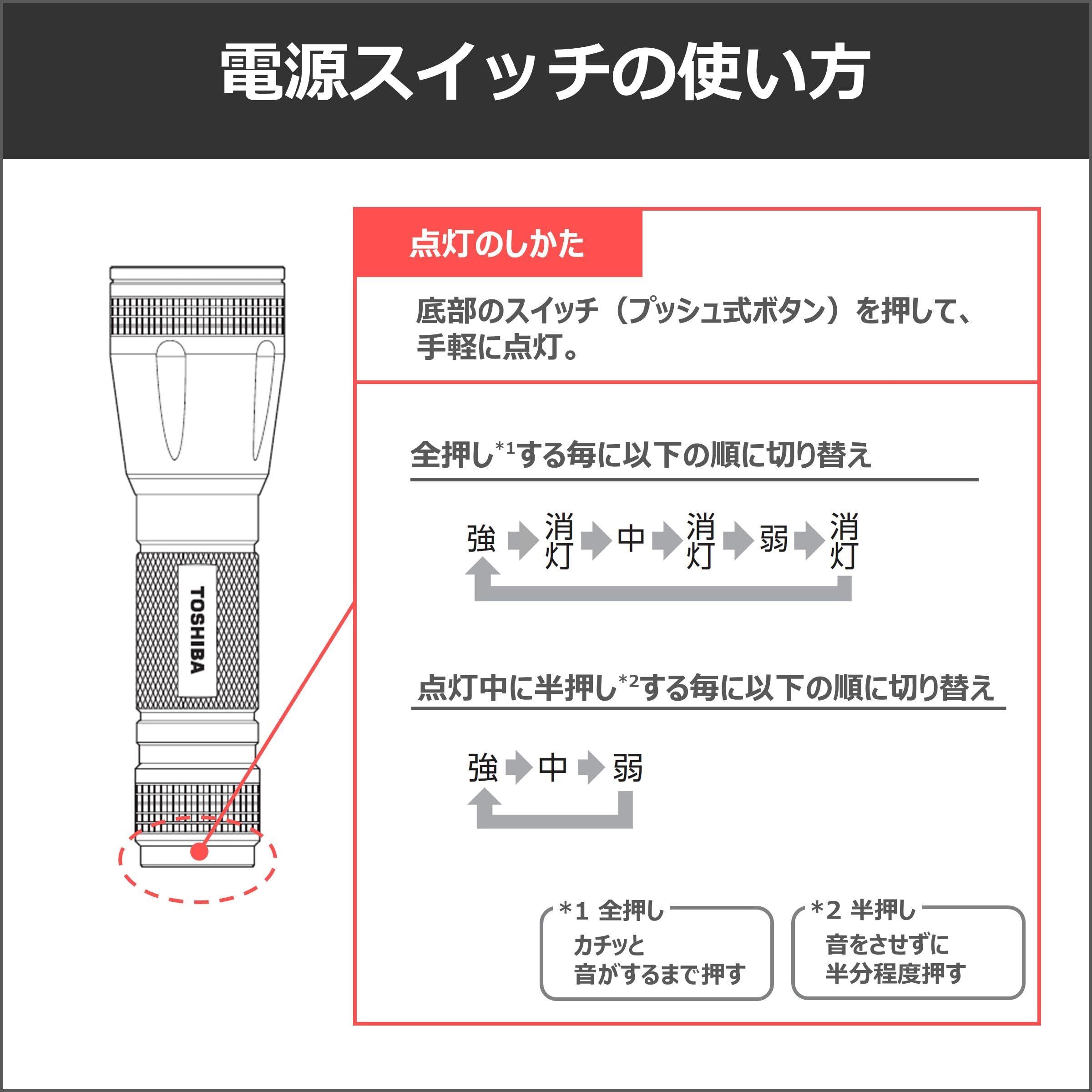 TOSHIBA(東芝) LED懐中電灯 KFL-43(K) 高輝度LEDチップ搭載 3段階調光可能 持ち運び便利ミニサイズ 単4形3本用