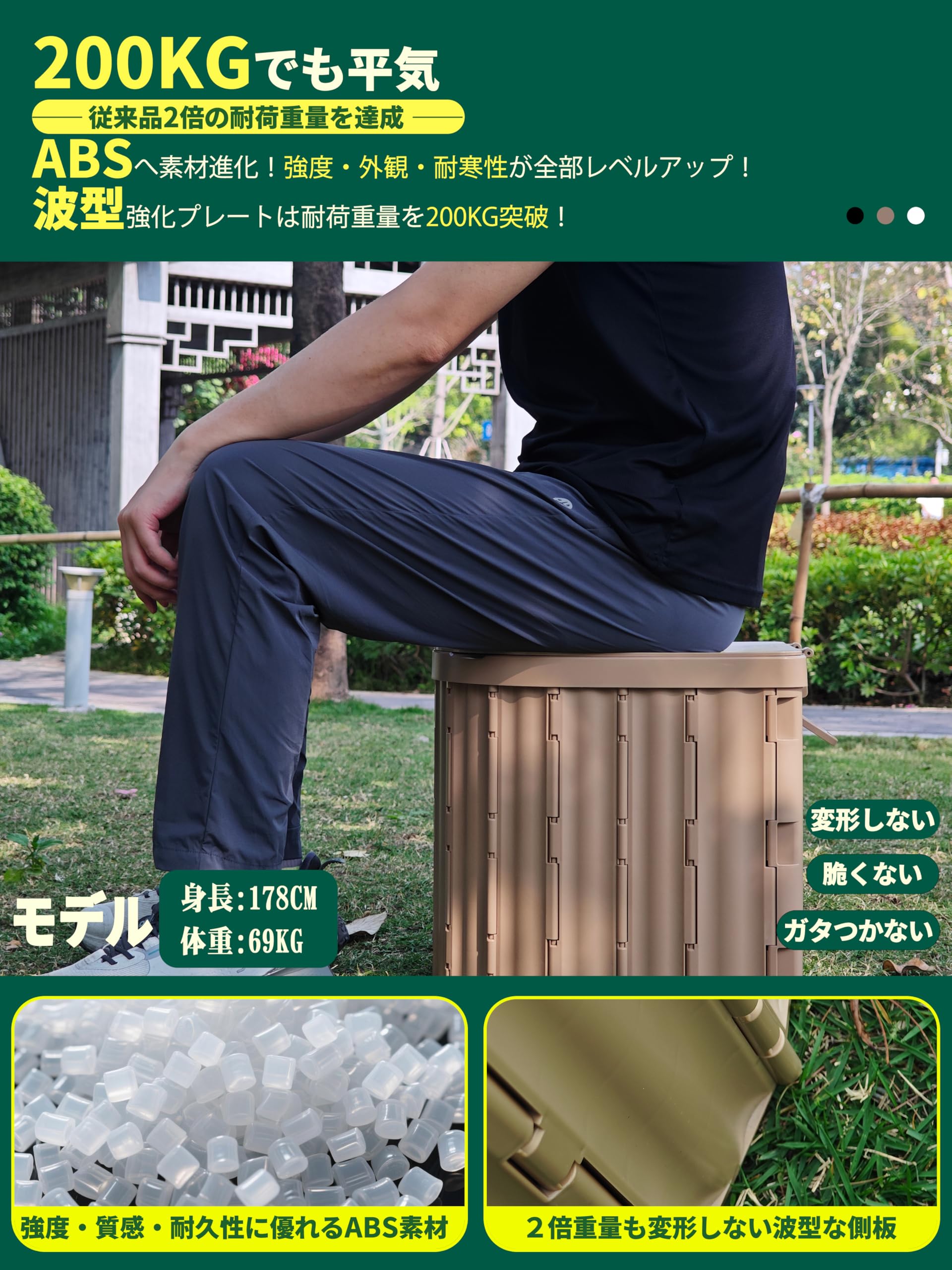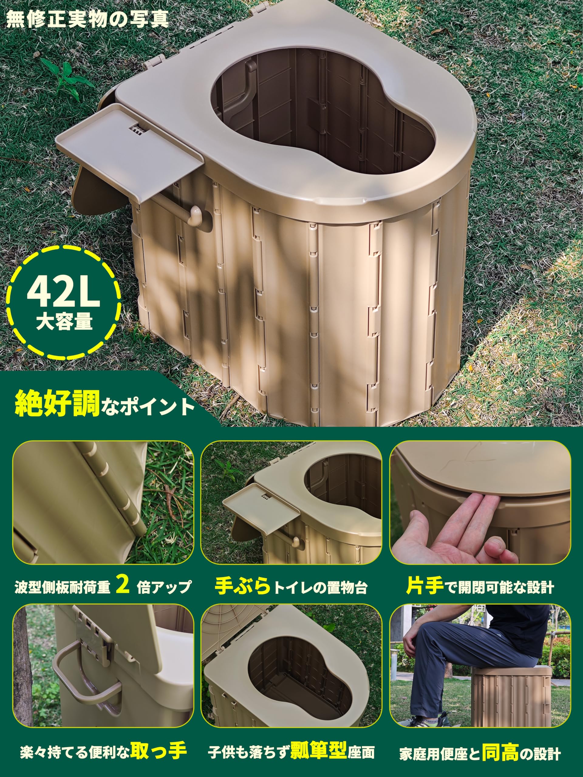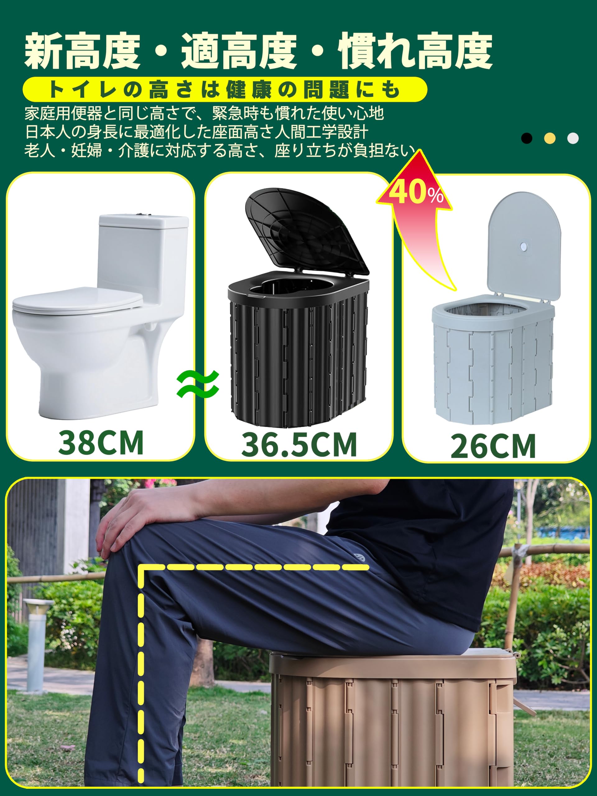 多様シーンと大体重にも対応:アウトドア・断水・高速渋滞・介護など、あらゆる状況で快適にご利用いただけます。材質と構造を徹底的に進化、従来品により耐荷重2倍もアップ、最大200kgの重量も対応!さらに、収納時にも場所を取らないコンパクト設計で、いつでもどこでも便利にご利用いただけます。