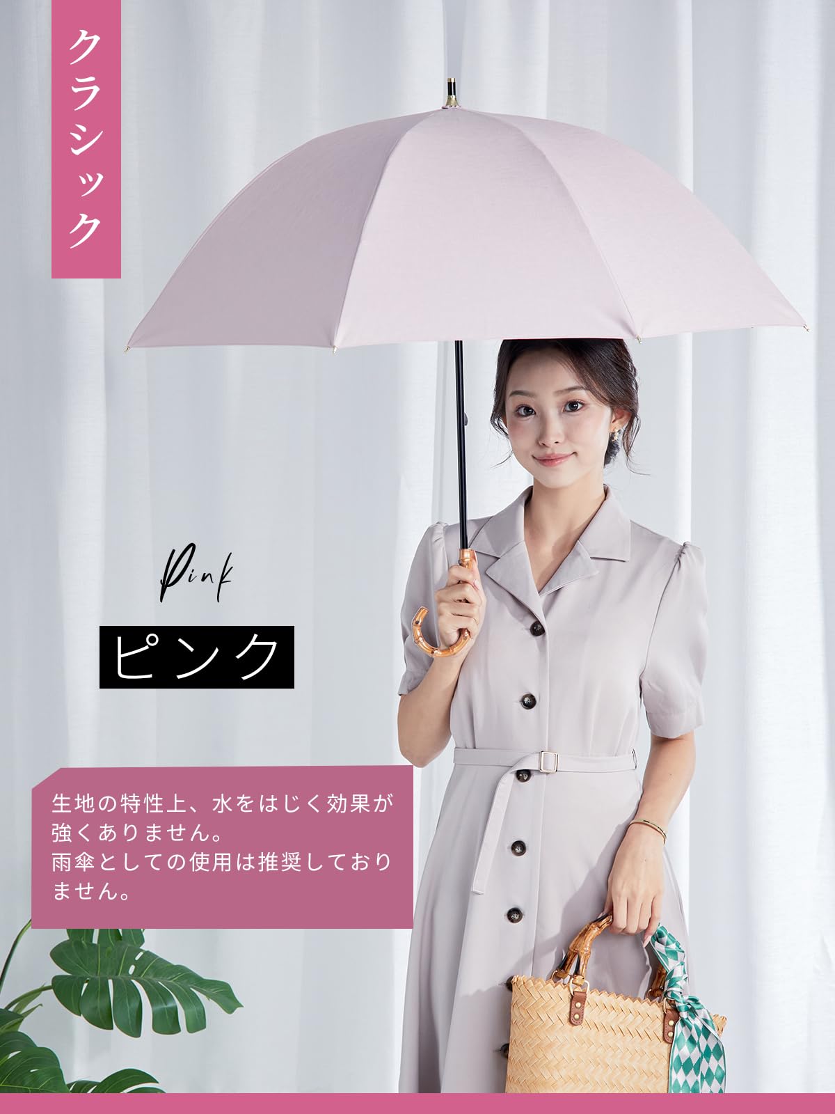 【シルキーラックス・高級光沢感】新作日傘登場!優雅な佇まいと上品な輝きで、女性らしさを際立たせる高級感日傘。太陽の光を受けるたびに、繊細な輝きを放つ特殊な「シルキーラックス」生地が、角度によって表情を変え、まるで生きているような美しさを醸し出します。上品な光沢としなやかな質感が、歩くたびに優雅な雰囲気をまとう、まさに女性らしさを際立たせる一本。持ち手には、伝統的な焼き竹の温もりをモダンに昇華したデザインを採用。滑らかな手触りとしっかりとした握り心地を両立し、さらにゴールド色の石突がアクセントとなり、洗練された高級感を演出しています。親骨55cmの広々傘面に、深張り仕様の上品なシルエット。通勤もお出かけも、いつもより優雅に。