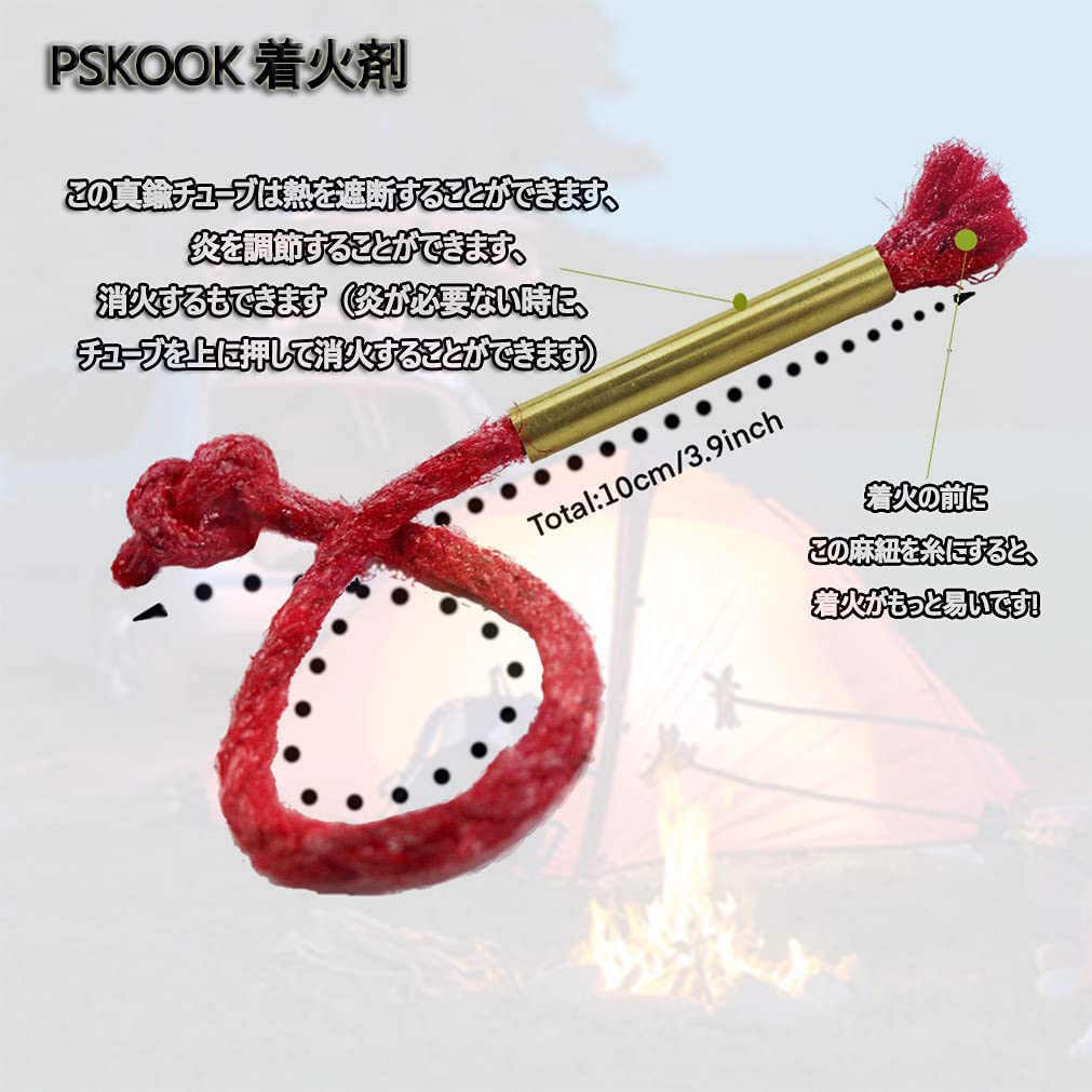 PSKOOK 火打ち石 キャンプ 火吹き棒 火打ち石セット メタルマッチ マグネシウム棒 火起こし ファイヤースターター 着火具 着火剤付き BBQ キャンプ バーベキュー用 緊急災害などに対応