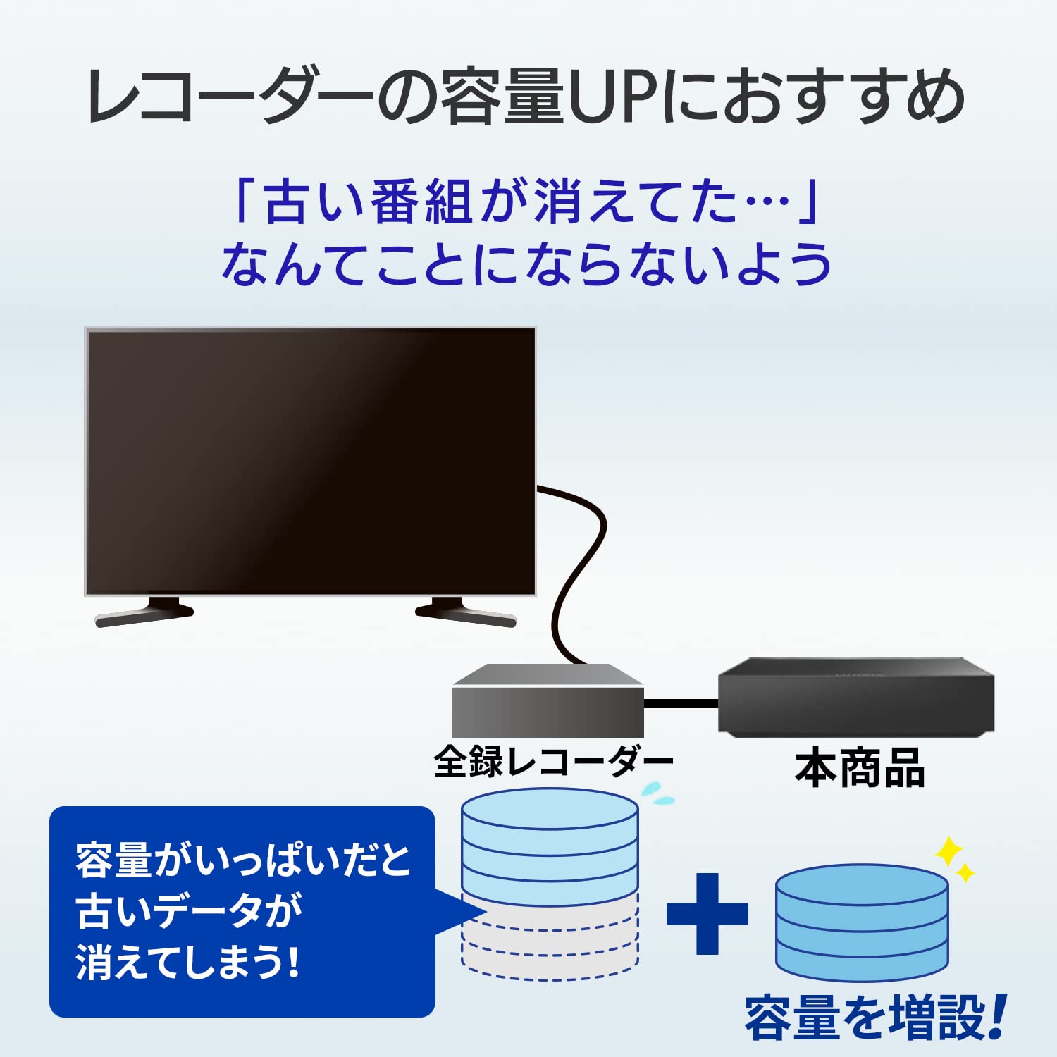 【レコーダーの容量UPにもおすすめ!】容量がいっぱいになって「古い番組が消えてた…」なんてことにならないよう、不足しそうなときは本商品で容量を増設しておきましょう。