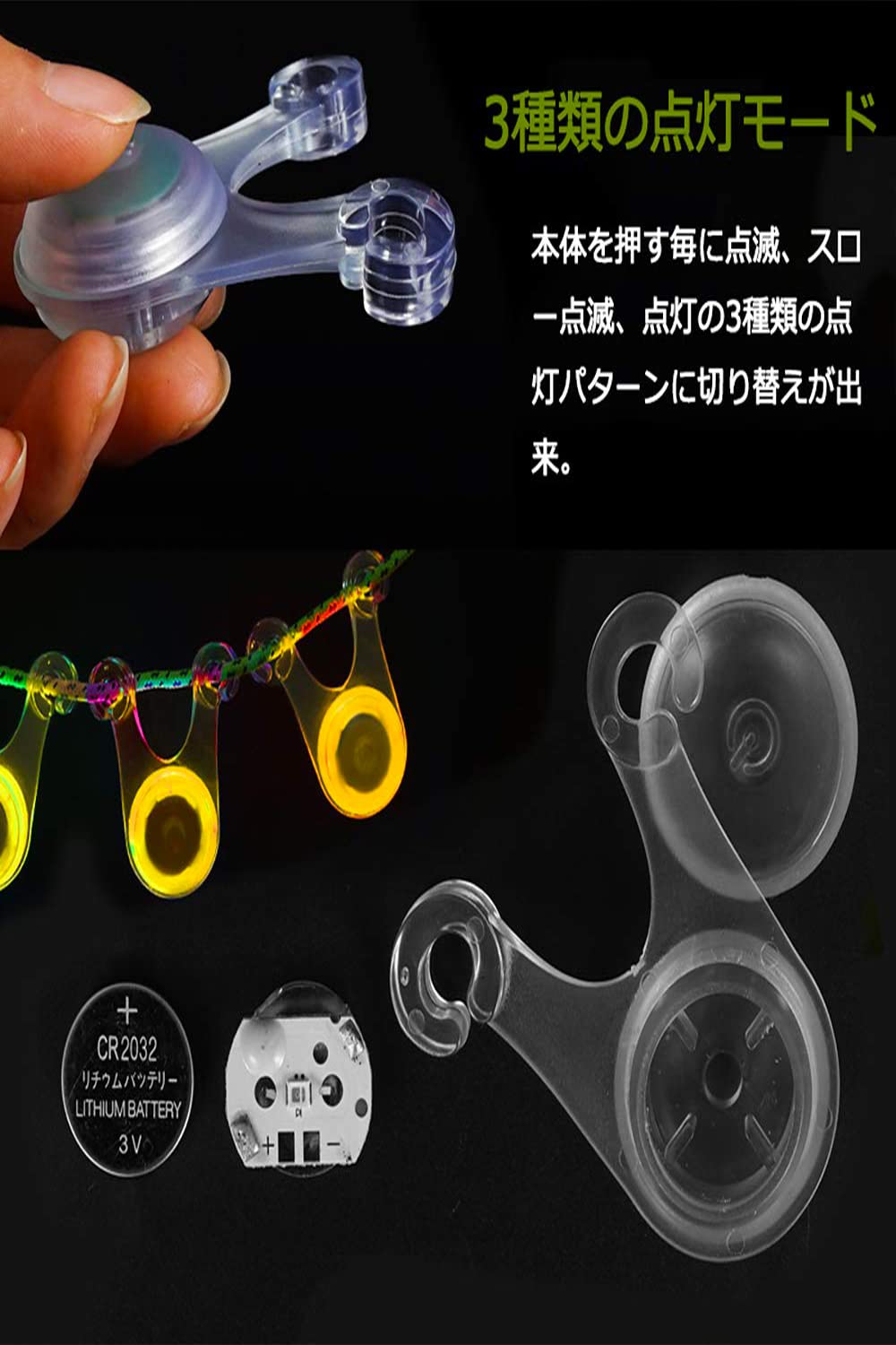 【特徴】LEDランプ、省エネ、取り付けしやすい、シリコン材質で比較的柔軟性があり、シートの下に吊り上げて道しるべになれる、ラインパイプやその他パイプ状のものに吊り上げることができる。どこでも便利!