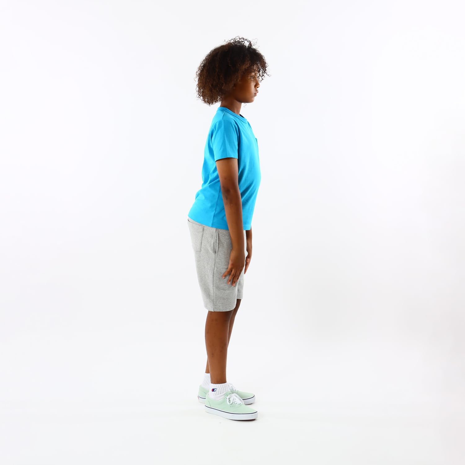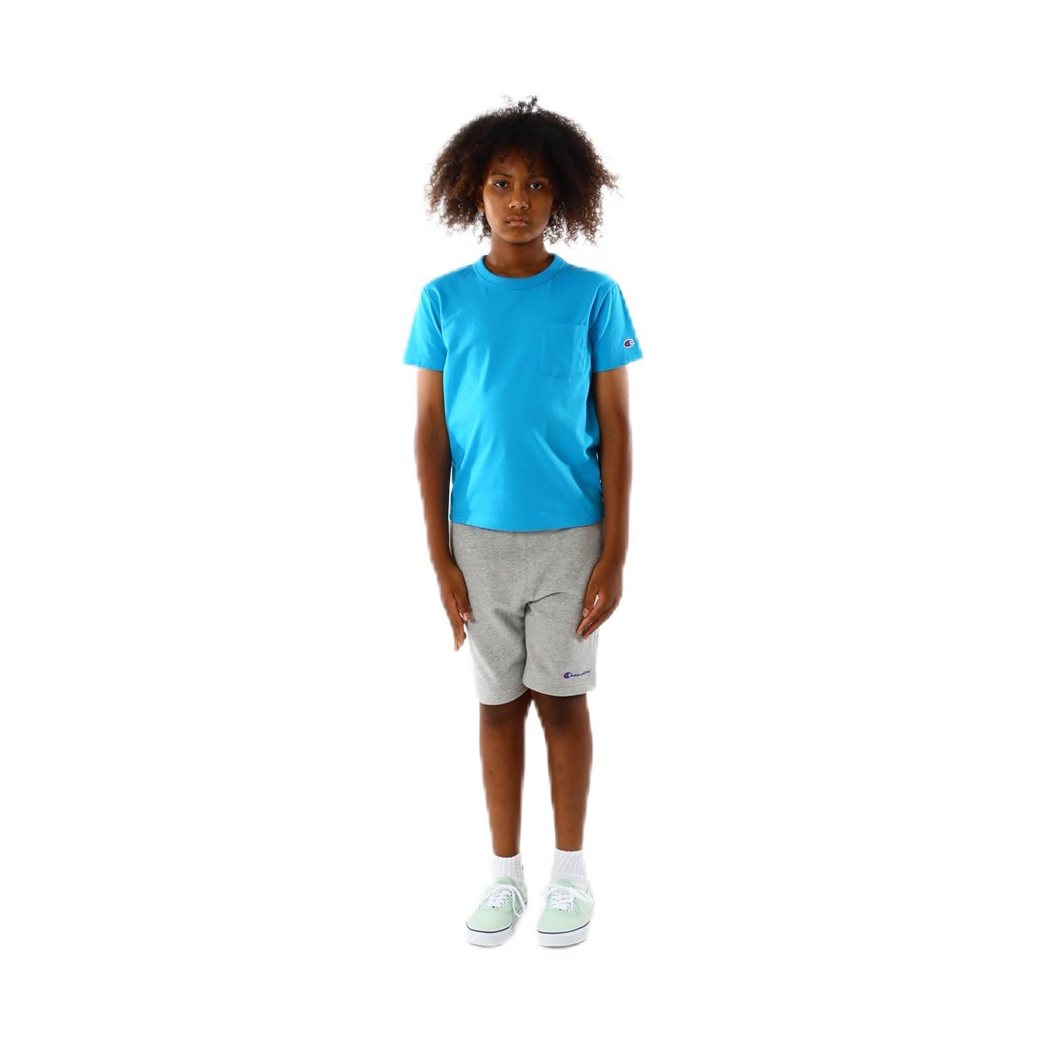 【数量限定】[チャンピオン] Tシャツ キッズ 半袖 丸首 綿100% ワンポイントロゴ刺繍 バインダーネック ショートスリーブポケットTシャツ ベーシック CK-Z303 | asaRulu0511
