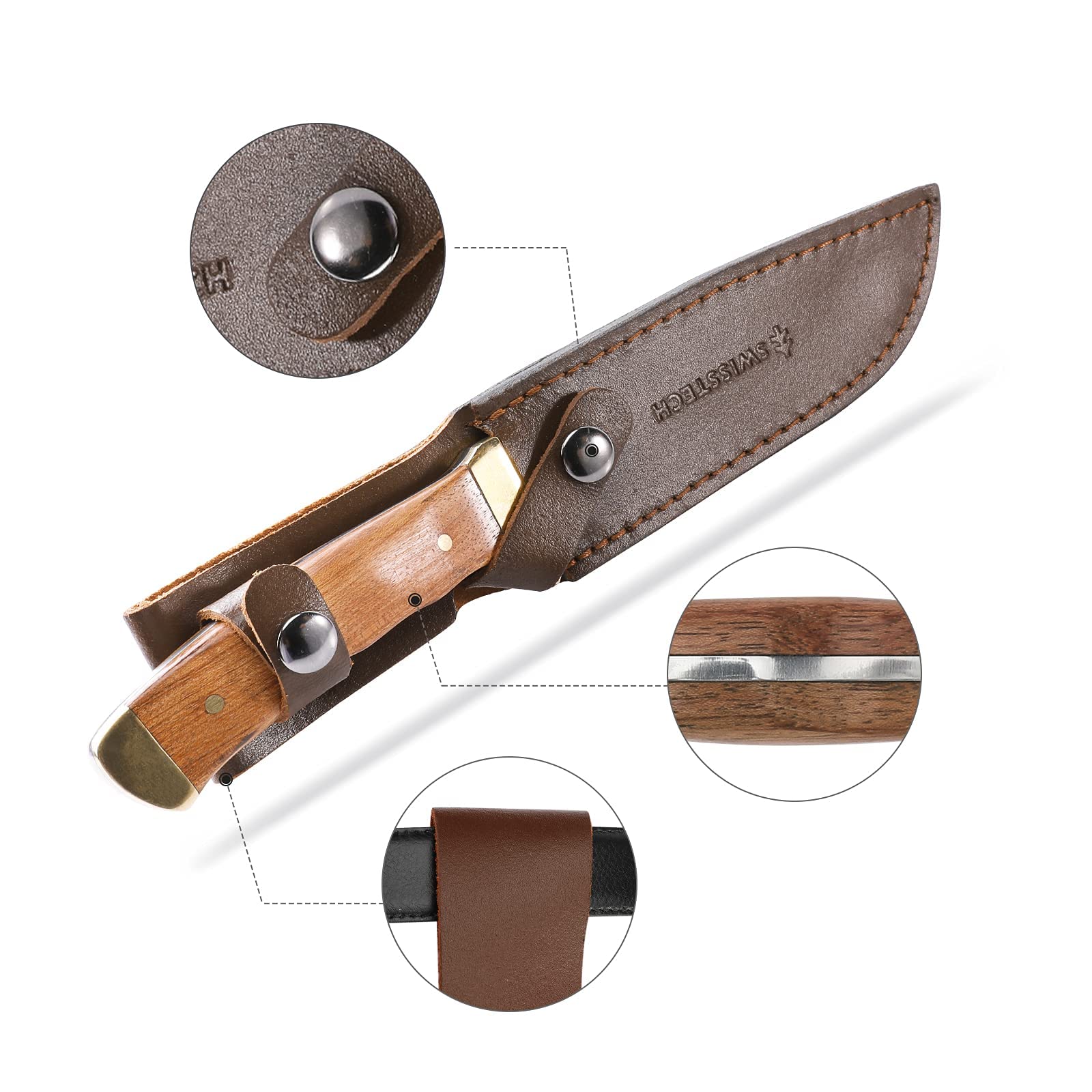 SWISS+TECH シースナイフ アウトドアナイフ キャンプナイフ フルタング構造 天然ウッドハンドル 刃渡り約13cm ケース付き