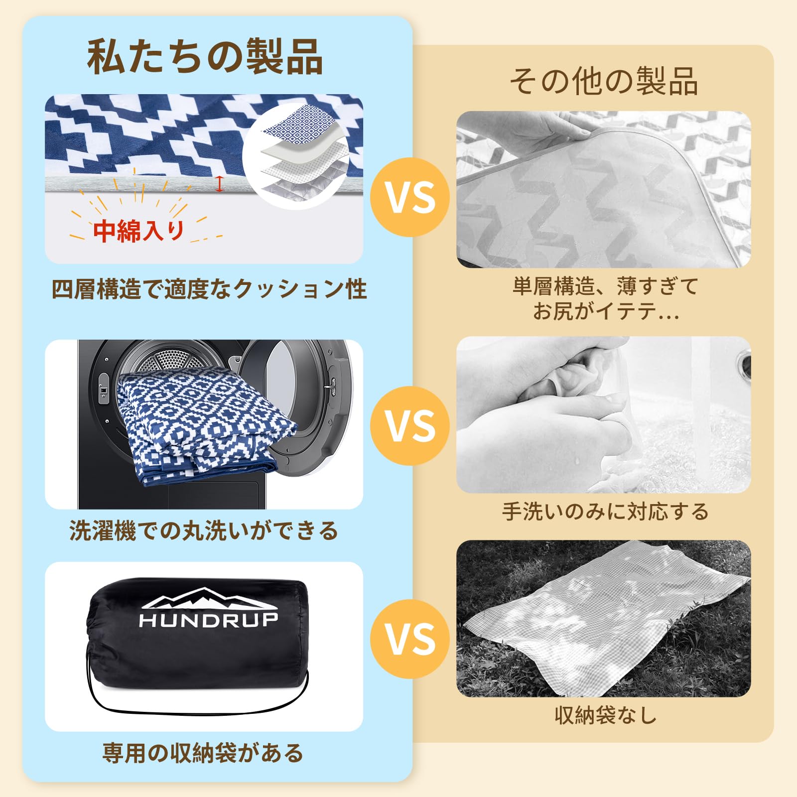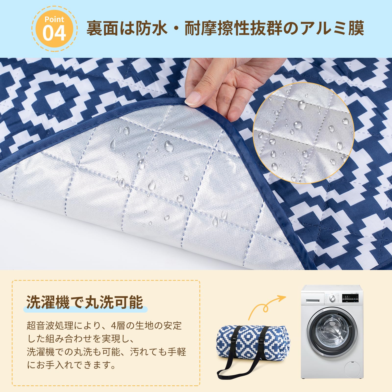 【洗濯機で丸洗い可能】:弊社のレジャーシートは超音波の力で生地を圧着しています。 中地のスポンジがしっかり固定していて、手洗いしても形崩れしにくいです。洗濯機に入れて手軽に洗うことができます。