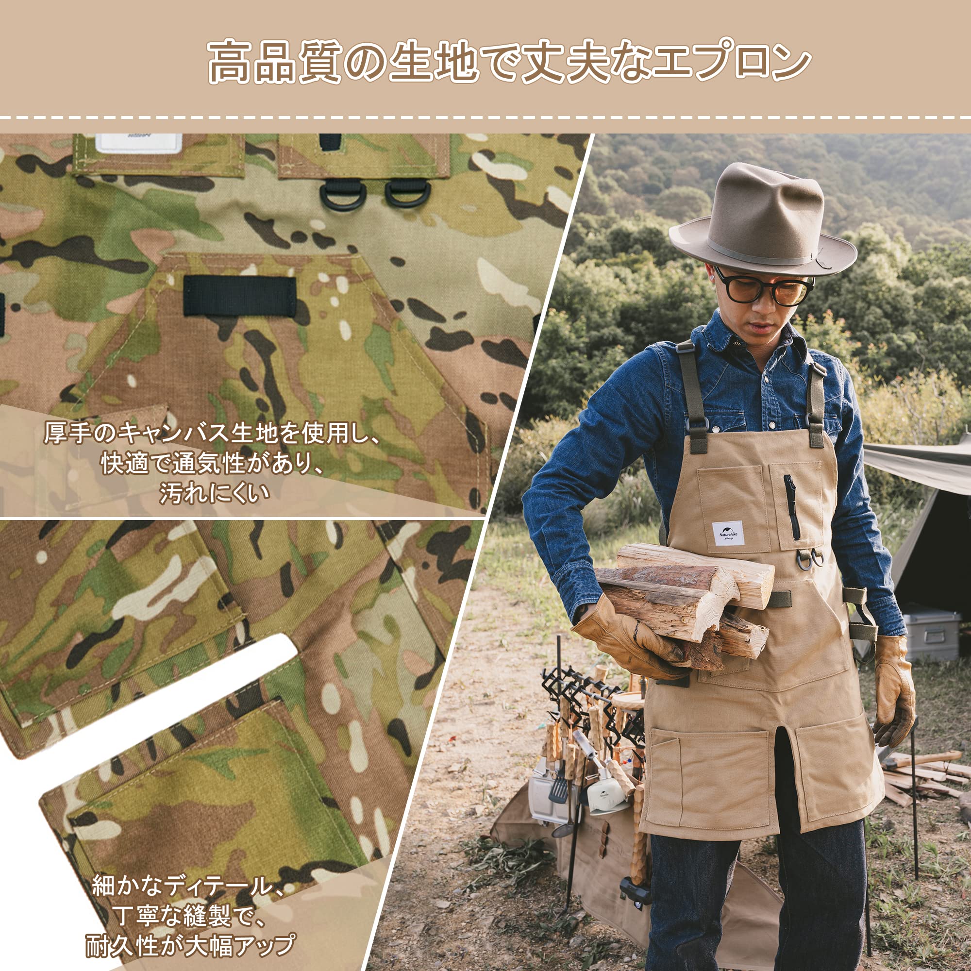 [Naturehike] 公式ショップ エプロン キャンプエプロン レディース メンズ おしゃれ かわいい ワークエプロン キャンプ 前掛け キャンバス素材 多用途 複数ポケット付き アウトドア ガーデニング 収納袋付き