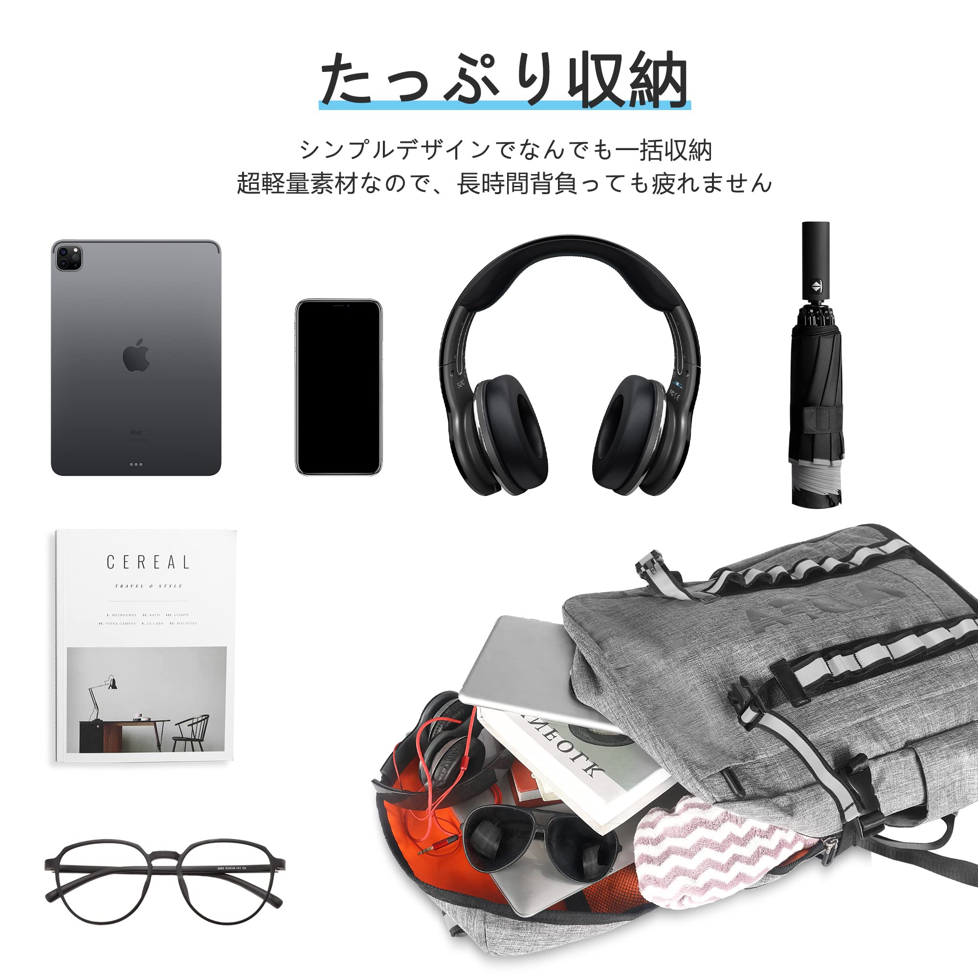 【大容量の30Lリュックサック】サイズ:(45+13)cm*32cm*20cm 重量:約1KG 容量:30L 人気のスクエア型+幅広マチ+SBSファスナー、17個のポケットがあり、収納力抜群で、どんなシーンでも大活躍するリュックメンズです。17インチPC、A4サイズの書類や2~3日分の着替えなど必要なアイテムたっぷりと入る可能で、スマートな仕分けポケット付き大容量バックパックです。手動測定のため、小さな誤差がある場合があります。