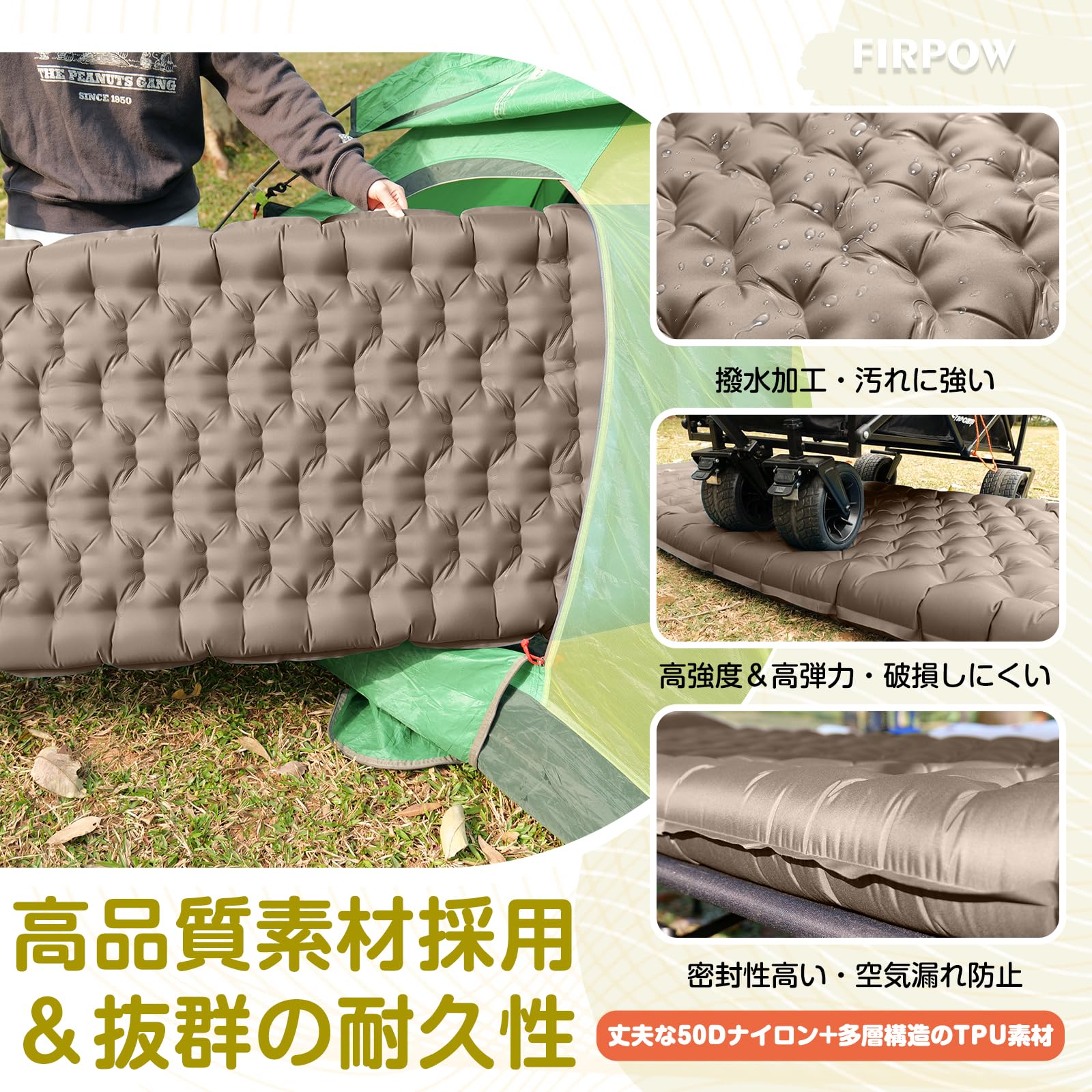 【新春セール】FIRPOW エアーマット キャンプ マット 【10cm厚さ・寝心地良い】枕付き エアマット コンパクト 軽量 防水防潮 車中泊 マット キャンプマット アウトドアマット キャンプ用 取扱説明書・収納袋付 折り畳み式 持ち運び便利