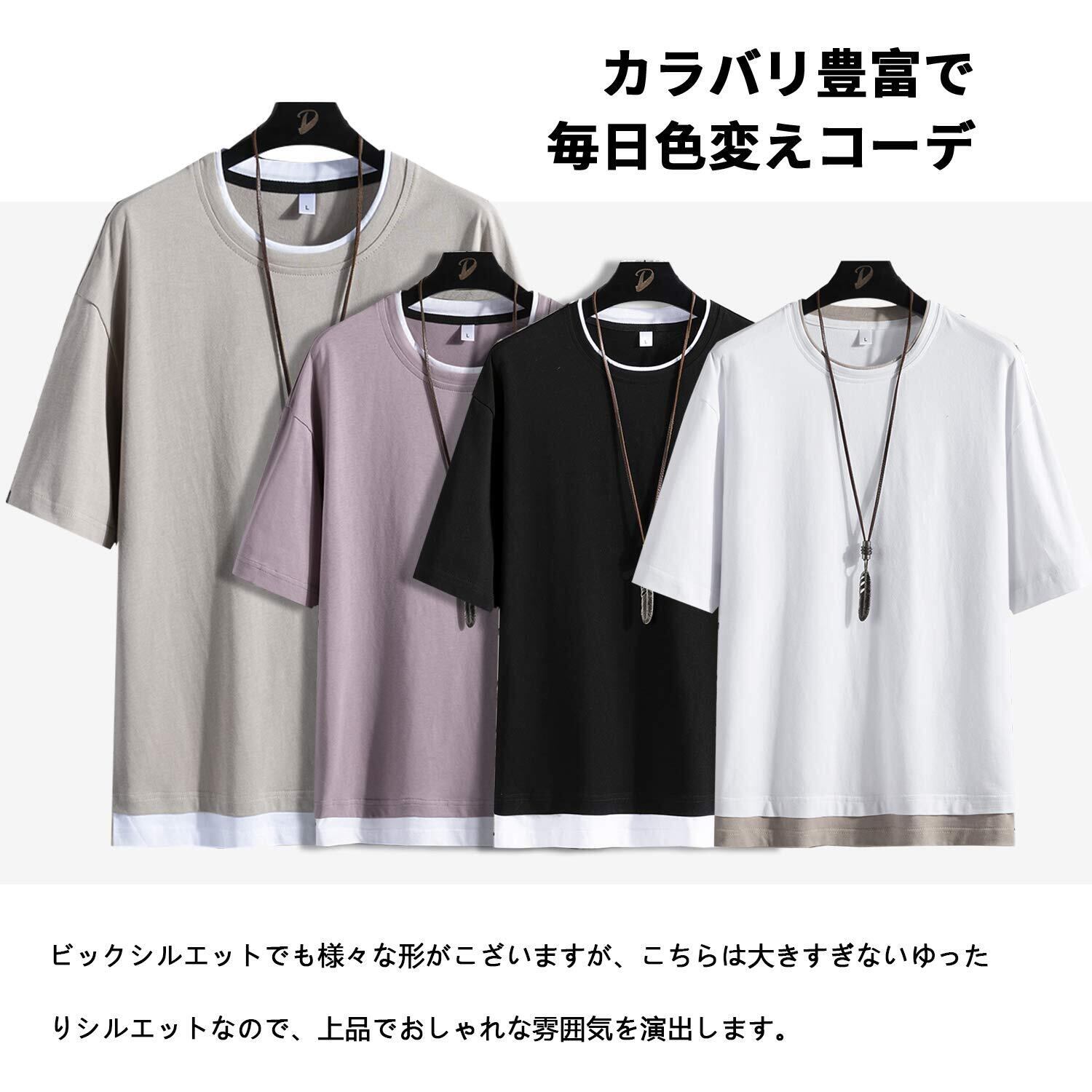 [Hiboss] tシャツ メンズ 半袖 無地 重ね着風 大きいサイズ ゆったり 五分袖 夏服メンズ