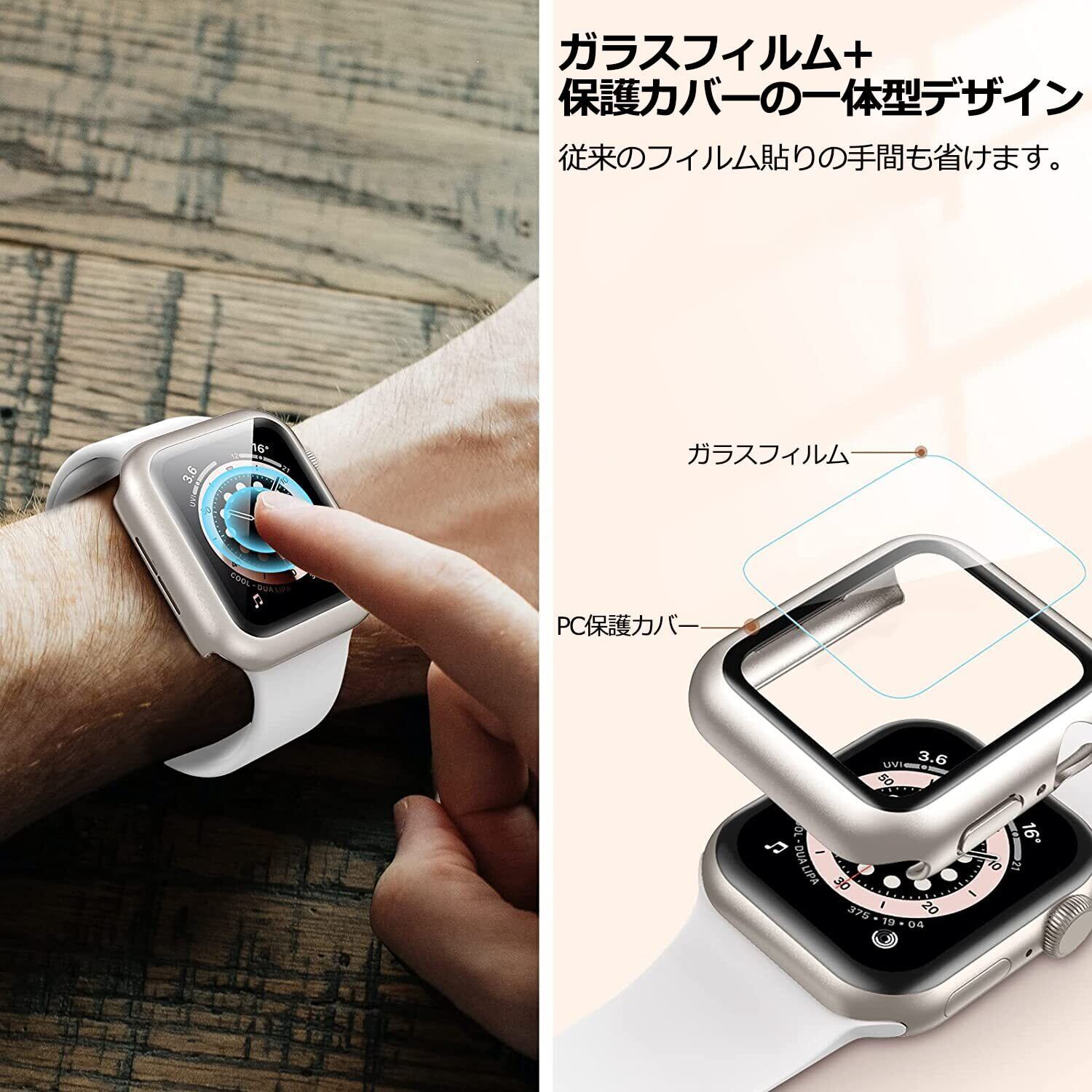 【高級感が溢れるデザイン&装着が簡単】 Apple Watchガラスフィルム+保護カバーの融合された革新的な一体型デザイン。取付け道具不要、本体の上から嵌めるだけで楽に装着できます。従来のフィルム貼りの手間も省けます。