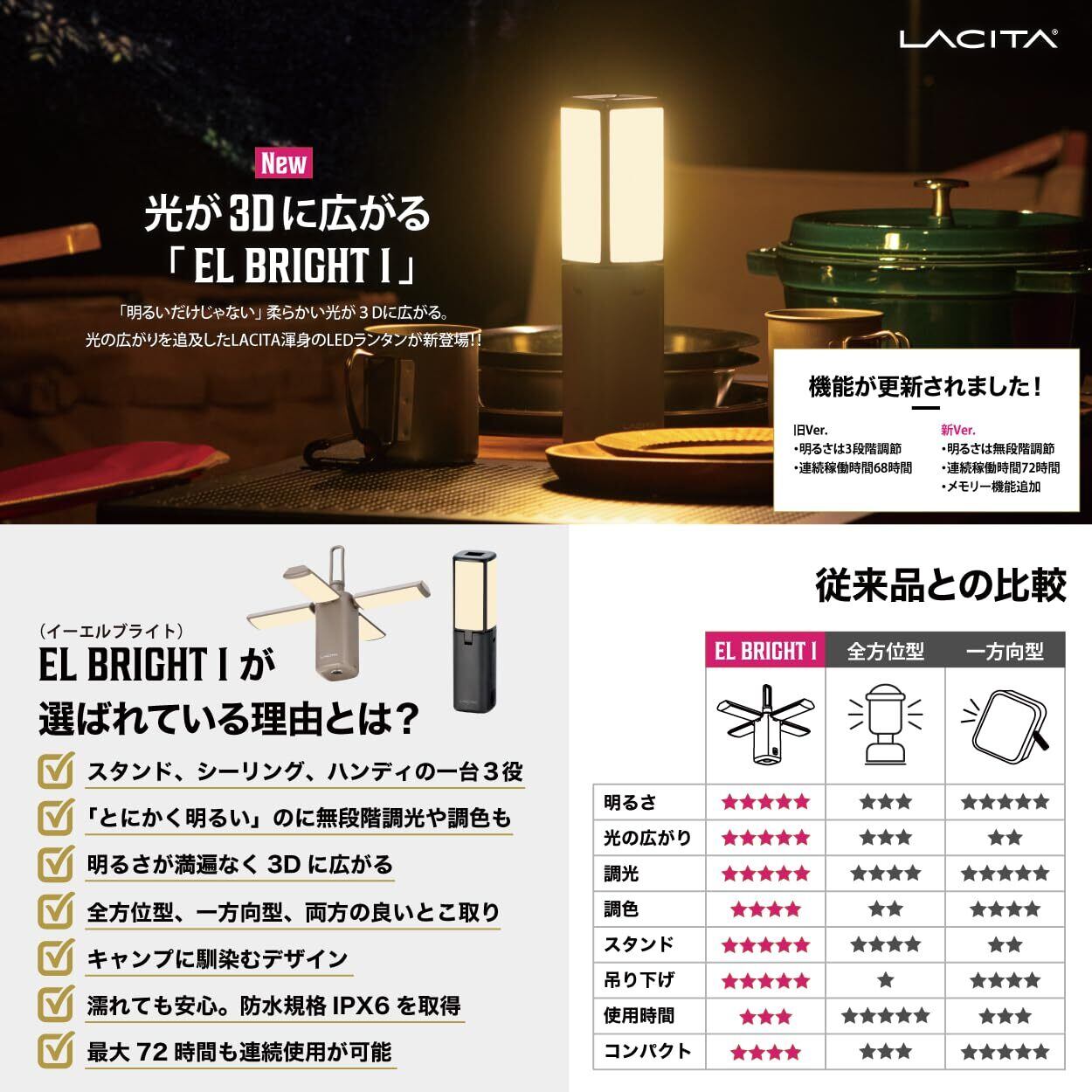 【新着商品】LACITA LEDランタン ポータブル 13400mAh 充電式 キャンプ アウトドア 防災 屋外仕様 防水 小型 明るい 電球色 暖色 蛍光色 昼光色 EL BRIGHT 1 (ブラック)