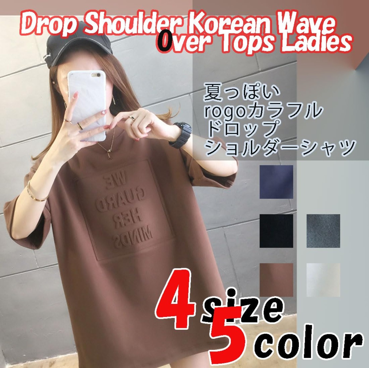[ ビッグラフ ] tシャツ ゆったり トップス ワイド ドロップ ショルダー 夏 快適 無地 ロゴ 韓国 風 半袖 レディースの登場