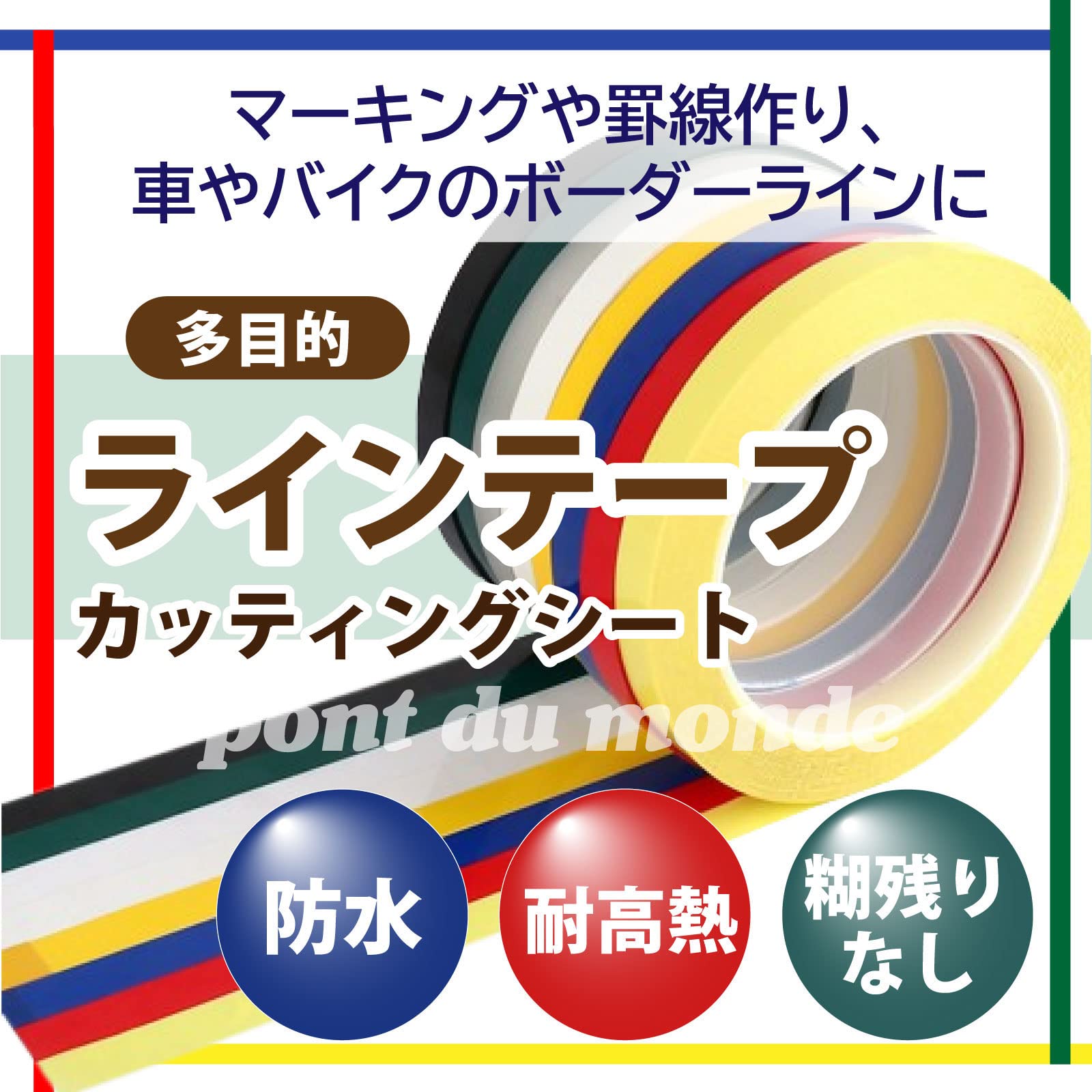 耐水防水効果もあり、車やバイクなどのボーダーラインや、床の位置決め、マークなどの線引きテープ、フリーテープ、カラーテープ等、様々な用途にお使いいただけます。