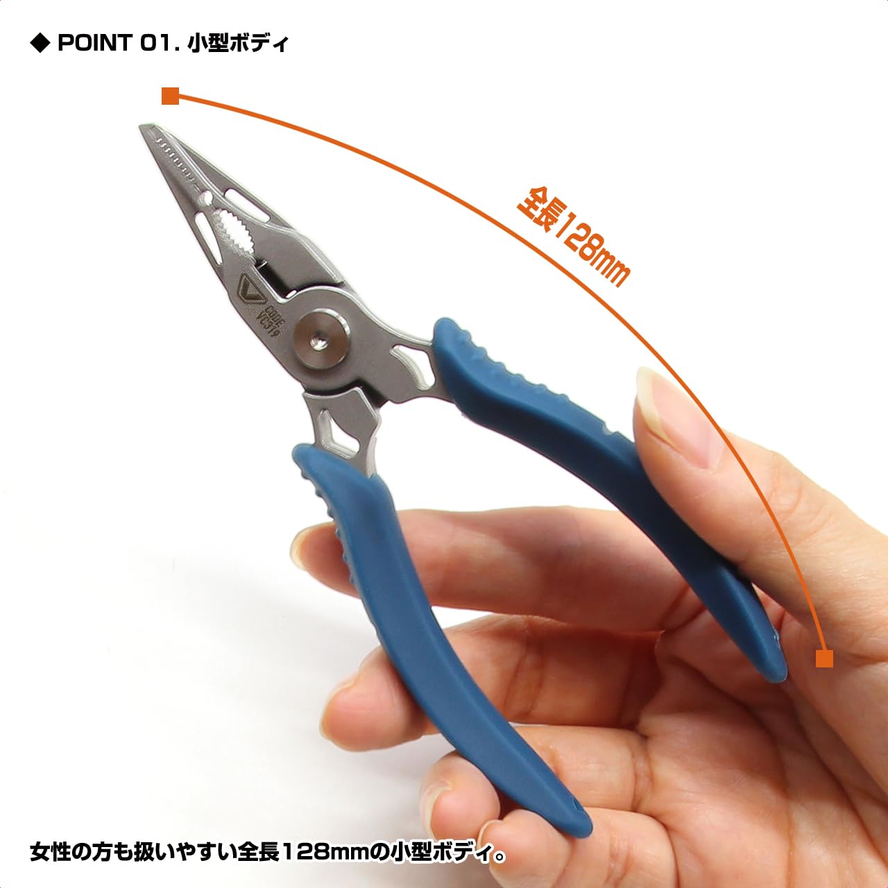 グリップ部はTPRを採用し、滑りにくくしっかり握れるフィット感。スプリットリングオープナーは#0のリングから対応。PEラインに対応したタングステンカッター。他にもフック外しはもちろん、ロック機能やリングホールなど充実機能。