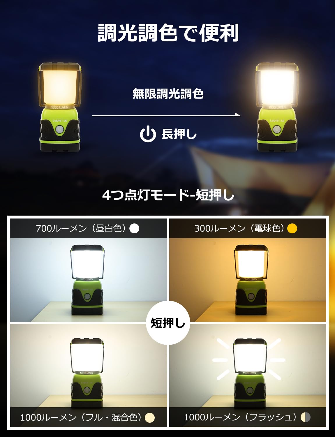 【在庫処分】LED ランタン キャンプランタン 【超高輝度 1000ルーメン/実用点灯12-240時間/電池式/昼光色・昼白色・電球色切替/4つ点灯モード/無段階調光調色/防滴仕様】ソロキャンプ アウトドア キャンプ 登山 夜釣り 防災 停電 緊急 非常用 LEDランタン | asaRulu0511