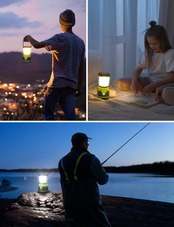 【4つの点灯モード・無段階調光調色】ランタンは700ルーメン(昼白色)・300ルーメン(電球色)・1000 ルーメン(フル・混合色)・1000ルーメン(フラッシュ)の4モードを選択可能で、スイッチを長押しすることによ り無段階調光調色もでき、ご利用シーンに応じて自由に設置できます。キャンプランタンとして大活躍。